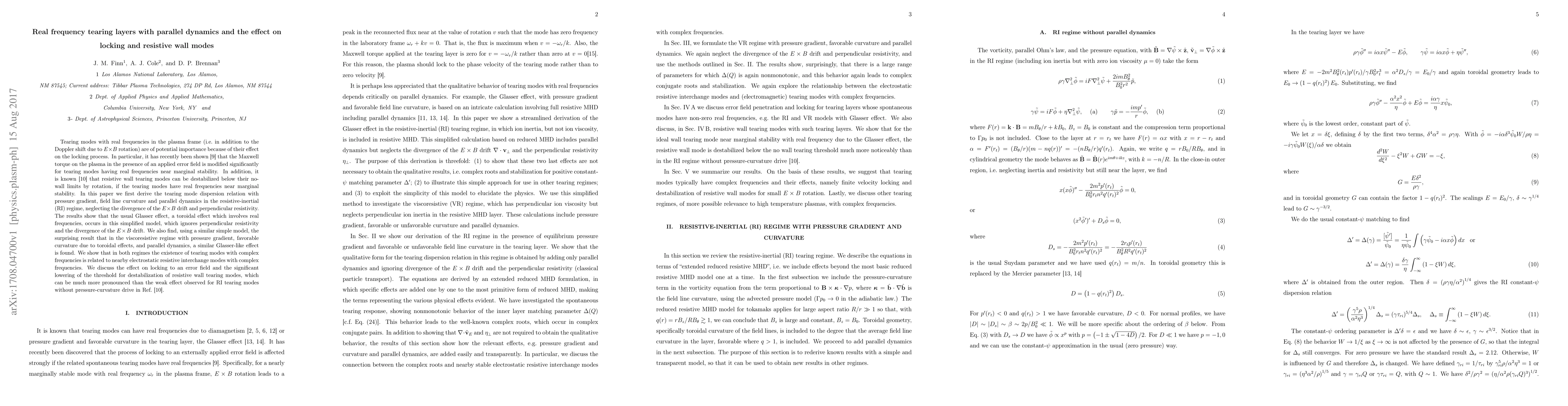 This paper investigates the impact of real frequency tearing layers in plasmas, showing that they significantly modify the Maxwell torque and destabilize resistive wall modes. It derives the dispersion relation for tearing modes considering pressure gradient, curvature, and parallel dynamics, revealing a Glasser-like effect in both resistive-inertial and viscoresistive regimes, which lowers the threshold for resistive wall mode destabilization.