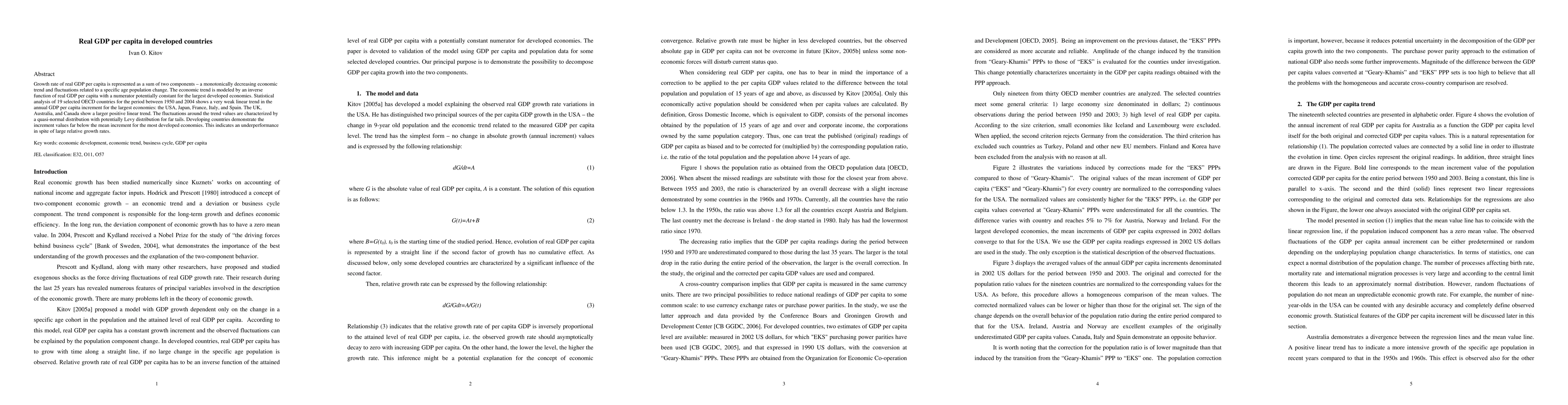 Growth rate of real GDP per capita is represented as a sum of two components -- a monotonically decreasing economic trend and fluctuations related to a specific age population change. The economic trend is modeled by an inverse function of real GDP per capita with a numerator potentially constant for the largest developed economies. Statistical analysis of 19 selected OECD countries for the period between 1950 and 2004 shows a very weak linear trend in the annual GDP per capita increment for the largest economies: the USA, Japan, France, Italy, and Spain. The UK, Australia, and Canada show a larger positive linear trend. The fluctuations around the trend values are characterized by a quasi-normal distribution with potentially Levy distribution for far tails. Developing countries demonstrate the increment values far below the mean increment for the most developed economies. This indicates an underperformance in spite of large relative growth rates.