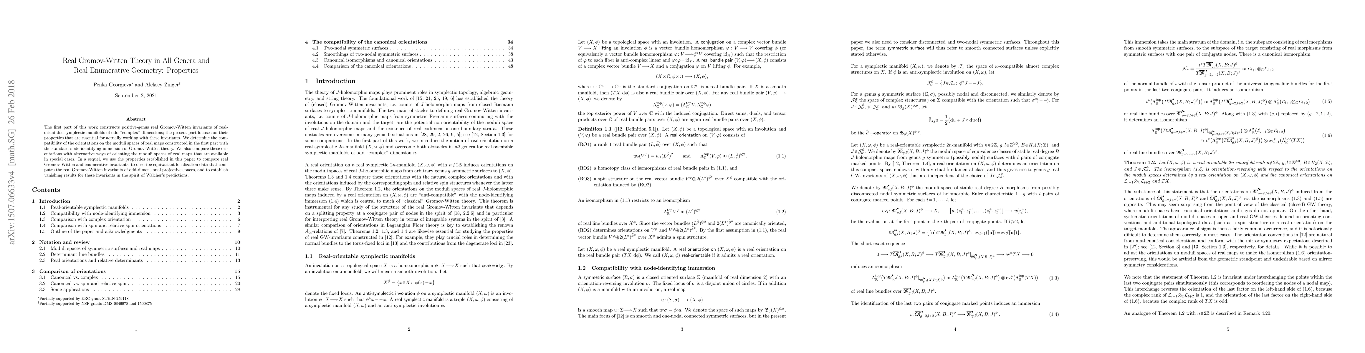 This paper constructs and studies properties of positive-genus real Gromov-Witten invariants on odd-dimensional symplectic manifolds, focusing on orientation compatibilities and comparisons. Future work will leverage these properties to compare real Gromov-Witten invariants with enumerative invariants and establish vanishing results.