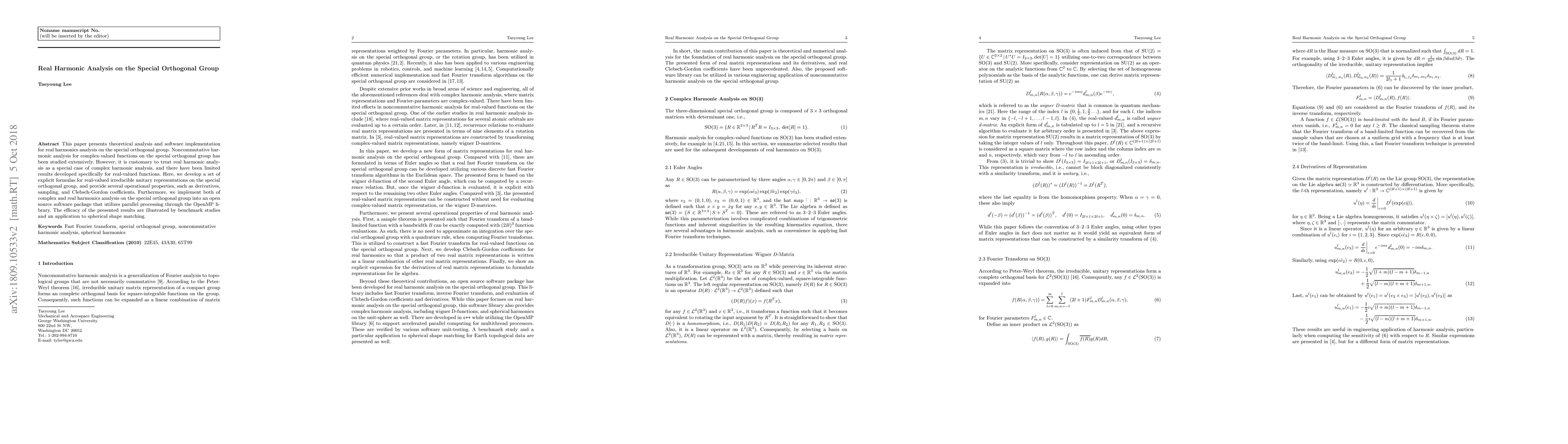 This paper develops explicit formulas for real harmonic analysis on the special orthogonal group, providing operational properties like derivatives and sampling, and implements both complex and real harmonic analysis in open-source software using parallel processing. Benchmark studies and an application to spherical shape matching demonstrate the efficacy of the results.