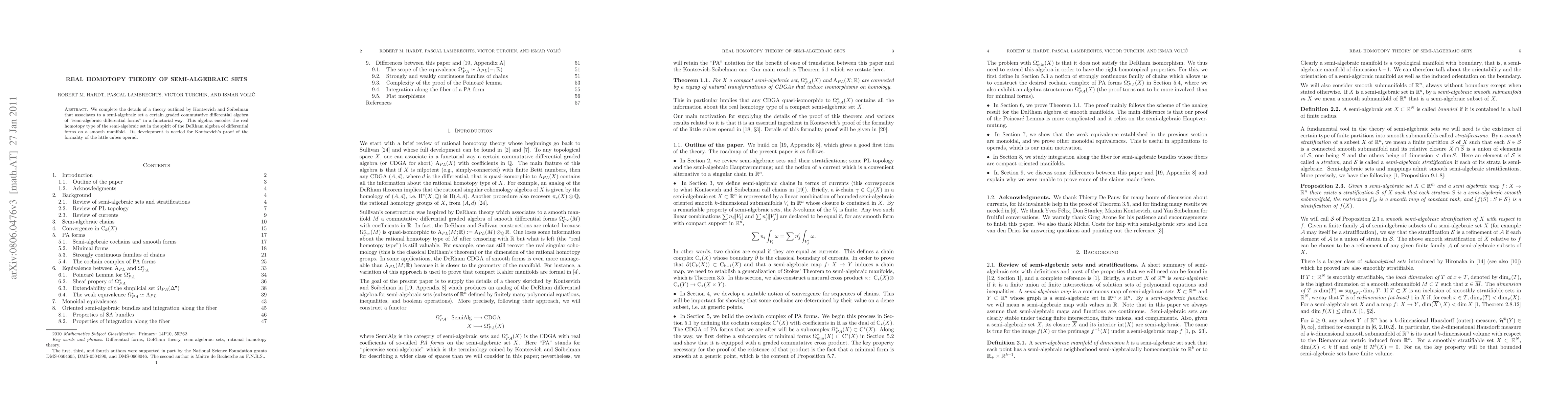 Researchers develop a theory associating semi-algebraic sets with graded commutative differential algebras of semi-algebraic forms, capturing their real homotopy type in a functorial way.