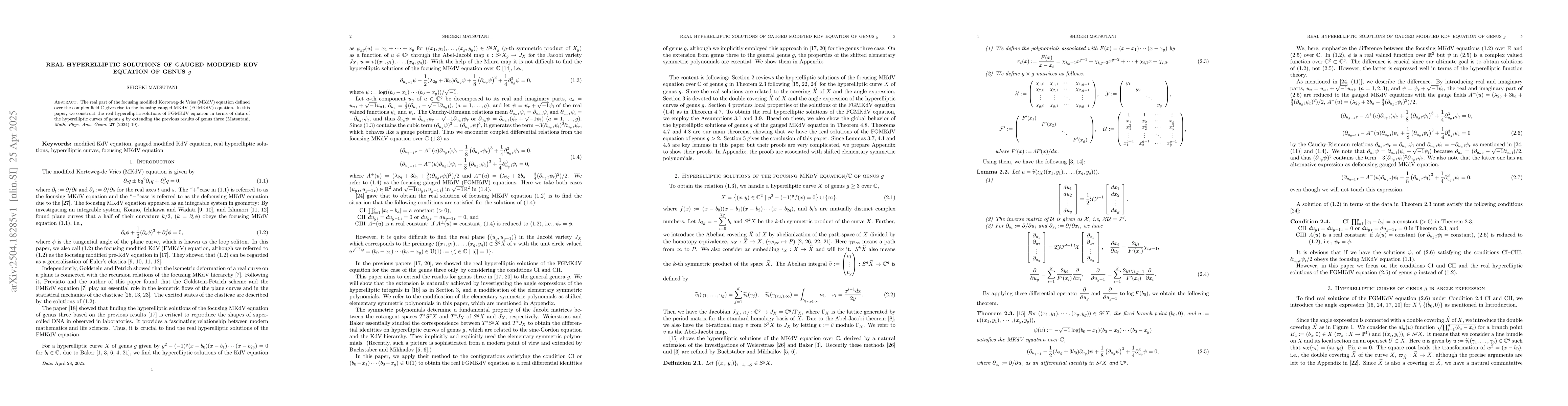 The research constructs real hyperelliptic solutions of the focusing gauged modified KdV (FGMKdV) equation using data from hyperelliptic curves of genus g, extending previous results for genus three.
