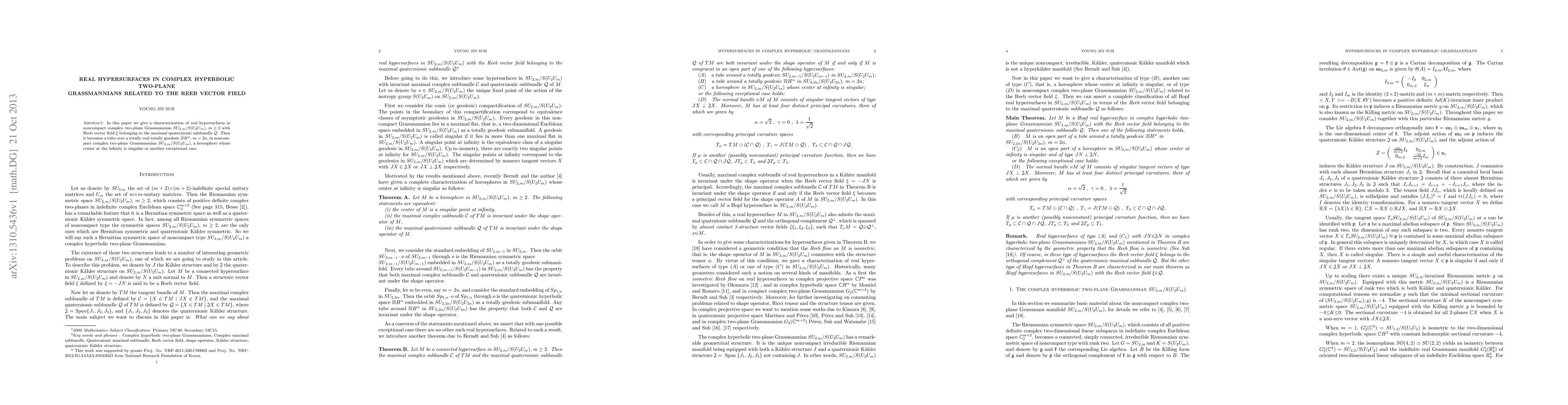 In this paper we give a characterization of real hypersurfaces in noncompact complex two-plane Grassmannian $SU_{2,m}/S(U_2 U_m)$, $m \geq 2$ with Reeb vector field $\xi$ belonging to the maximal quaternionic subbundle $\mathcal Q$. Then it becomes a tube over a totally real totally geodesic ${\mathbb H}H^n$, $m=2n$, in noncompact complex two-plane Grassmannian $SU_{2,m}/S(U_2 U_m)$, a horosphere whose center at the infinity is singular or another exceptional case.