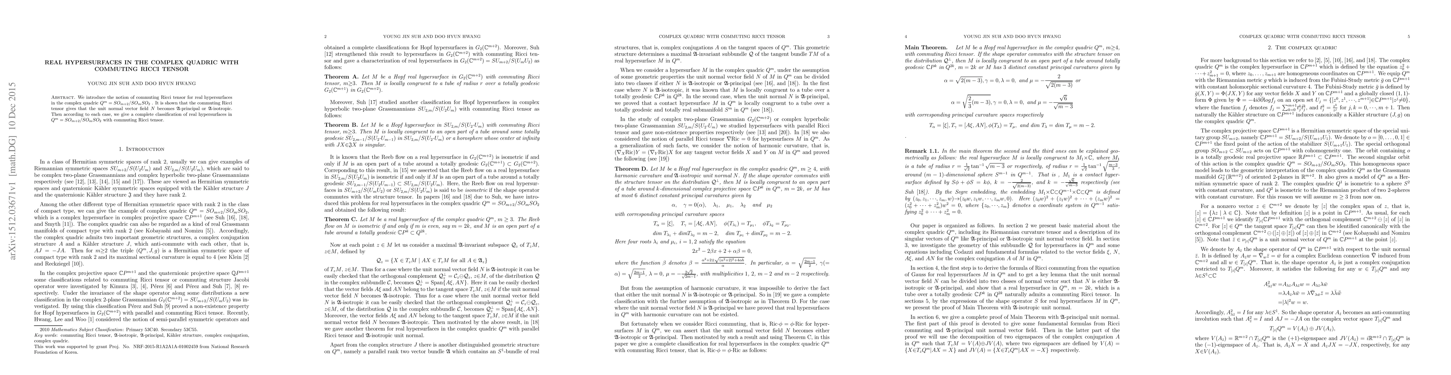 This paper introduces the concept of commuting Ricci tensor for real hypersurfaces in the complex quadric $Q^m$, proving that it leads to the unit normal vector being $\frak A$-principal or $\frak A$-isotropic. It then classifies these hypersurfaces according to these two cases.