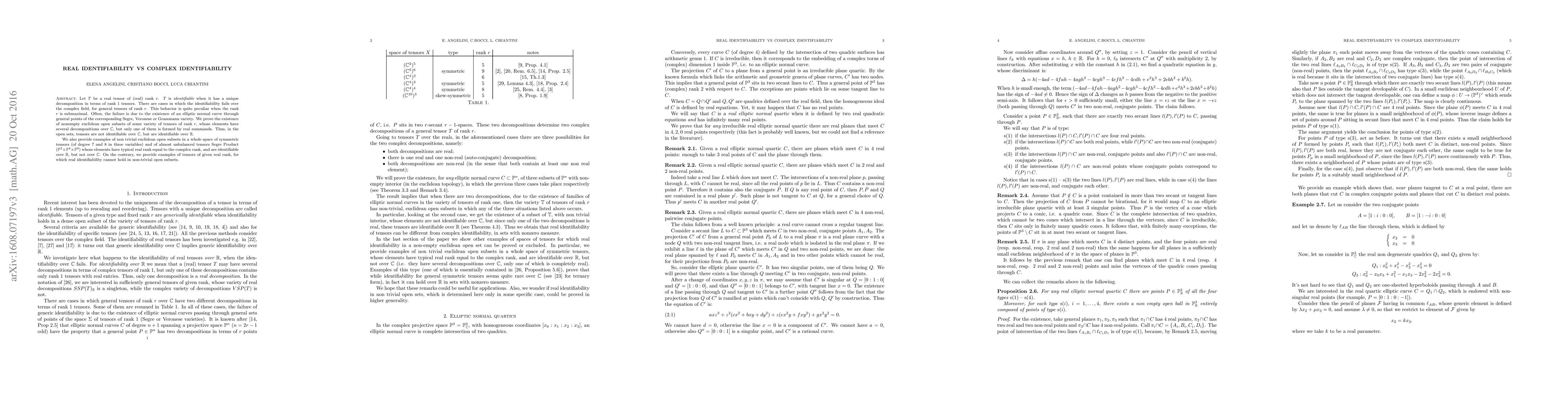 Researchers find that certain real tensors of rank r can have multiple decompositions over the complex field, but only one decomposition consists of real summands, highlighting a distinction between real and complex identifiability.