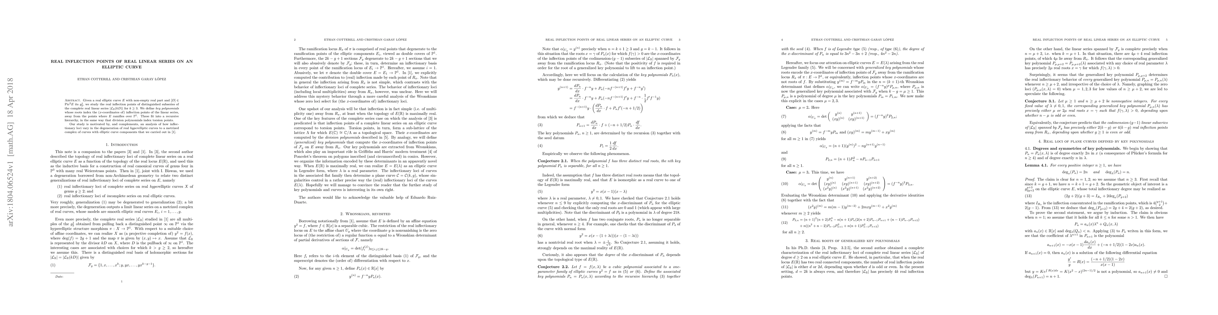 This paper investigates real inflection points on an elliptic curve $E$ within certain linear series, defining key polynomials that index these points. It builds on previous work analyzing the degeneration of hyperelliptic curves, establishing a recursive hierarchy similar to that of division polynomials for torsion points.