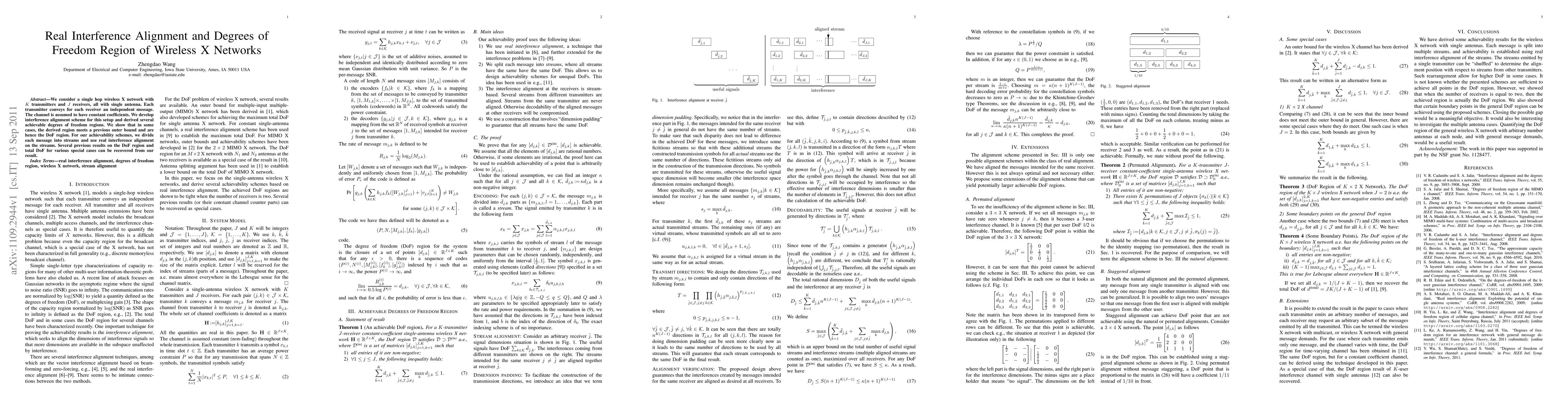 We consider a single hop wireless X network with $K$ transmitters and $J$ receivers, all with single antenna. Each transmitter conveys for each receiver an independent message. The channel is assumed to have constant coefficients. We develop interference alignment scheme for this setup and derived several achievable degrees of freedom regions. We show that in some cases, the derived region meets a previous outer bound and are hence the DoF region. For our achievability schemes, we divide each message into streams and use real interference alignment on the streams. Several previous results on the DoF region and total DoF for various special cases can be recovered from our result.