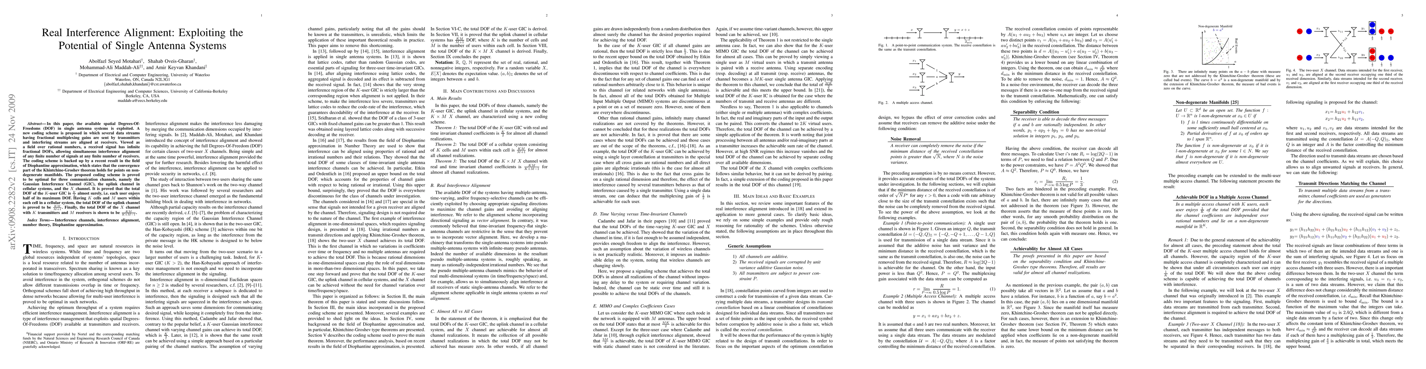 Researchers propose a new coding scheme that exploits single antenna systems' potential to align interfering streams, achieving optimal fractional Degrees-Of-Freedoms for multiple channels, including the Gaussian Interference Channel, uplink channels in cellular systems, and the X channel.