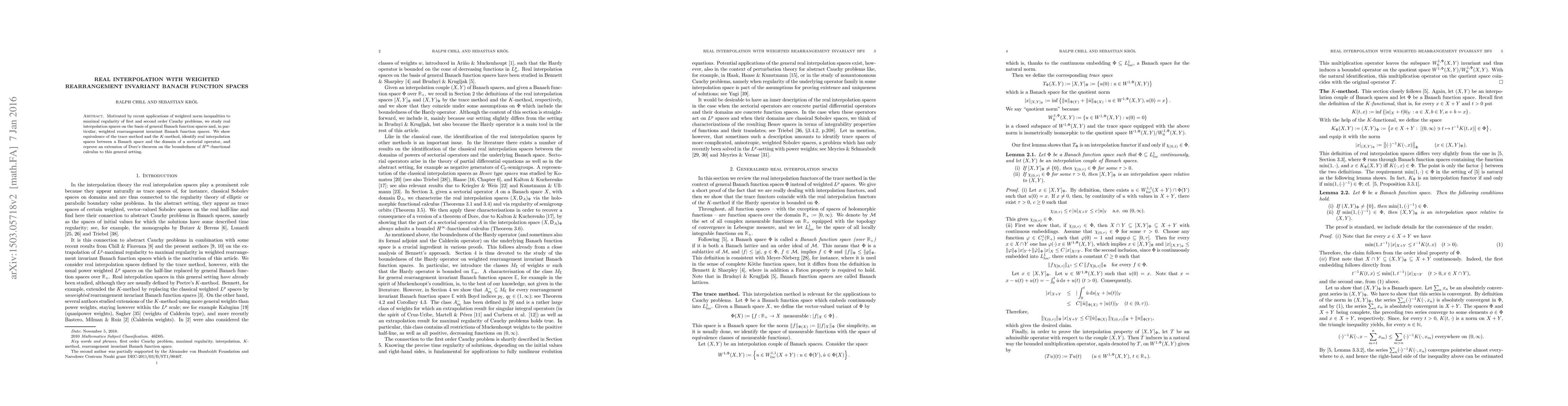 Motivated by recent applications of weighted norm inequalities to maximal regularity of first and second order Cauchy problems, we study real interpolation spaces on the basis of general Banach function spaces and, in particular, weighted rearrangement invariant Banach function spaces. We show equivalence of the trace method and the $K$-method, identify real interpolation spaces between a Banach space and the domain of a sectorial operator, and reprove an extension of Dore's theorem on the boundedness of $H^\infty$-functional calculus to this general setting.
