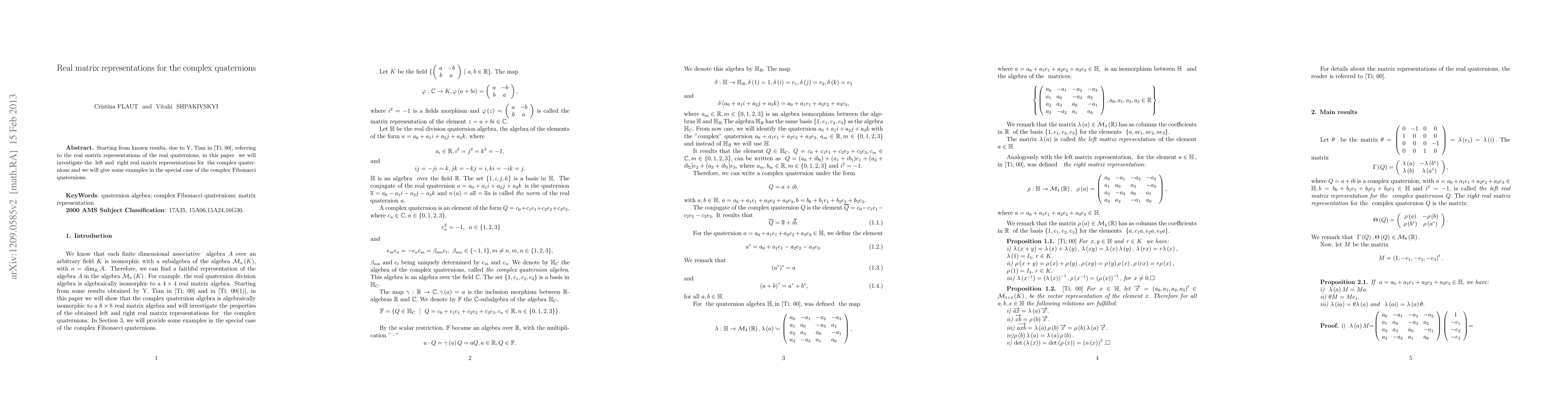 The research introduced a new matrix representation of complex quaternions, which has been shown to have unique properties and potential applications.