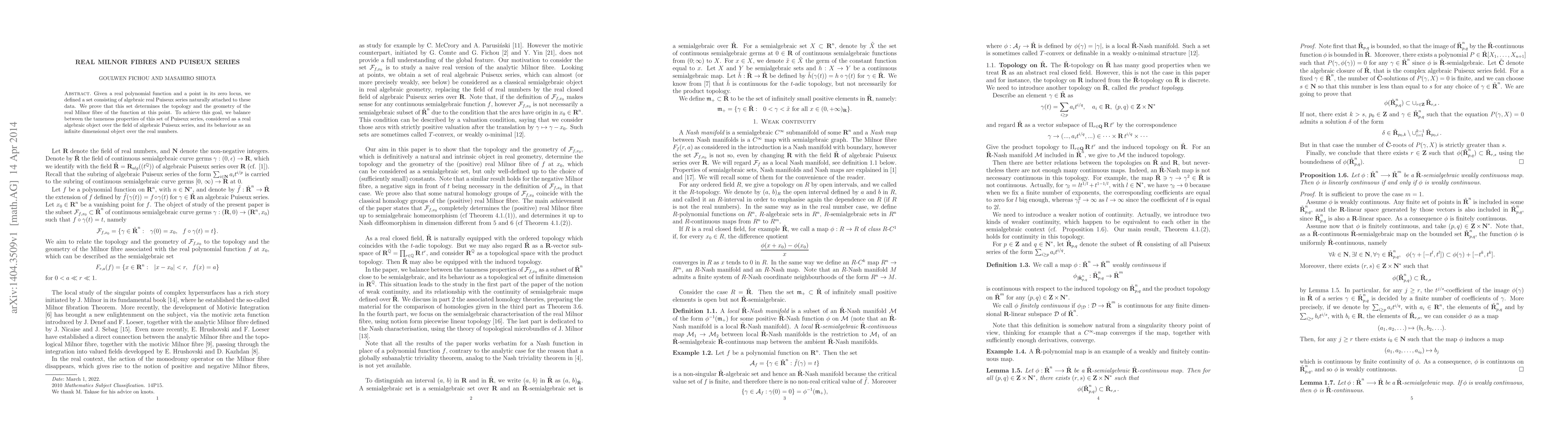 This paper defines a set of algebraic real Puiseux series associated with a real polynomial function and a point in its zero locus, proving that this set determines the topology and geometry of the real Milnor fibre. The authors balance the tameness properties of these series as real algebraic objects with their infinite-dimensional behavior over the real numbers.