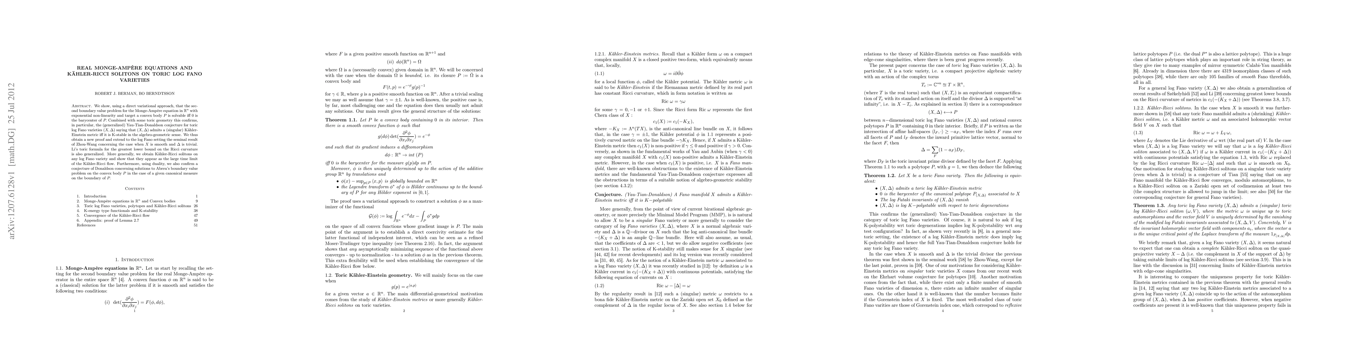We show, using a direct variational approach, that the second boundary value problem for the Monge-Amp\`ere equation in R^n with exponential non-linearity and target a convex body P is solvable iff 0 is the barycenter of P. Combined with some toric geometry this confirms, in particular, the (generalized) Yau-Tian-Donaldson conjecture for toric log Fano varieties (X,D), saying that (X,D) admits a (singular) K\"ahler-Einstein metric iff it is K-stable in the algebro-geometric sense. We thus obtain a new proof and extend to the log Fano setting the seminal result of Zhou-Wang concerning the case when X is smooth and D is trivial. Li's toric formula for the greatest lower bound on the Ricci curvature is also generalized. More generally, we obtain K\"ahler-Ricci solitons on any log Fano variety and show that they appear as the large time limit of the K\"ahler-Ricci flow. Furthermore, using duality, we also confirm a conjecture of Donaldson concerning solutions to Abreu's boundary value problem on the convex body P. in the case of a given canonical measure on the boundary of P.