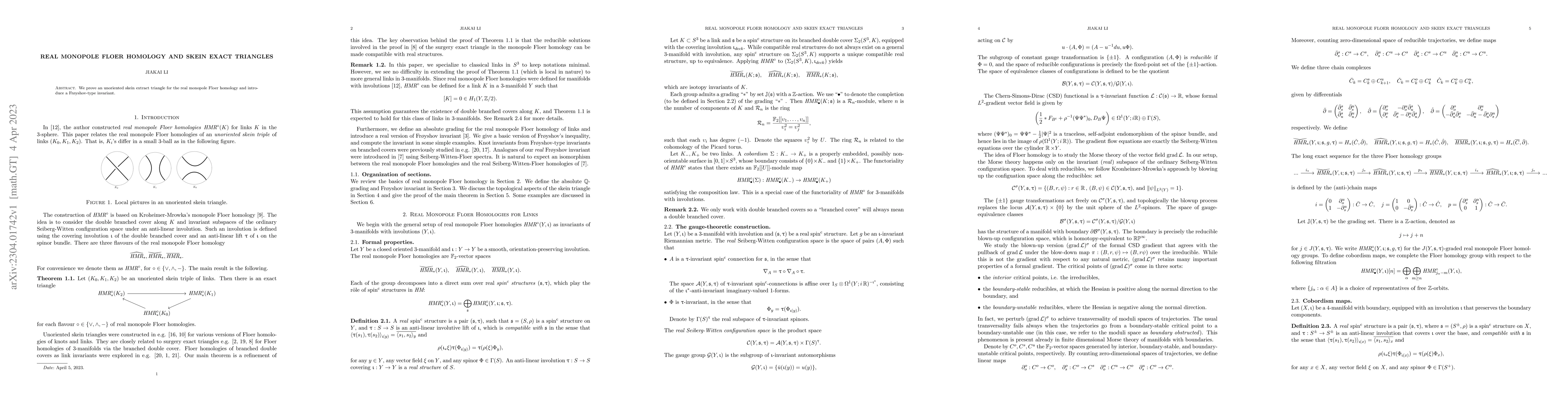 This paper establishes an unoriented skein exact triangle for real monopole Floer homology and proposes a new Frøyshov-type invariant, advancing the understanding of these topological invariants in low-dimensional geometry.