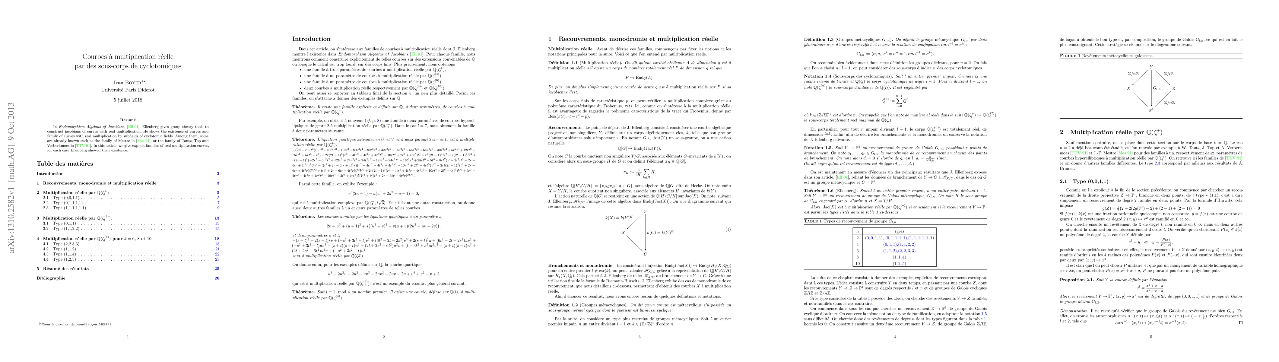 This paper provides explicit families of real multiplication curves, extending earlier results by Ellenberg on the existence of such curves, specifically for cases related to cyclotomic fields and families discovered by Mestre, Tautz, Top, and Verberkmoes.