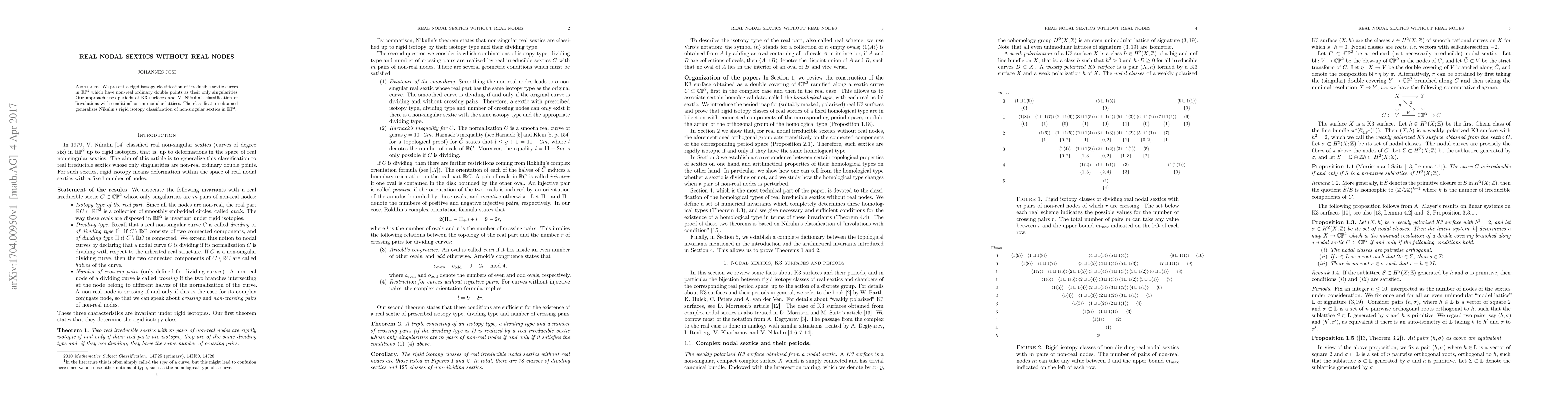 This paper classifies irreducible sextic curves in $\mathbb{RP}^2$ with non-real ordinary double points as their only singularities using periods of K3 surfaces and Nikulin's classification of lattices, extending the classification of non-singular sextics.