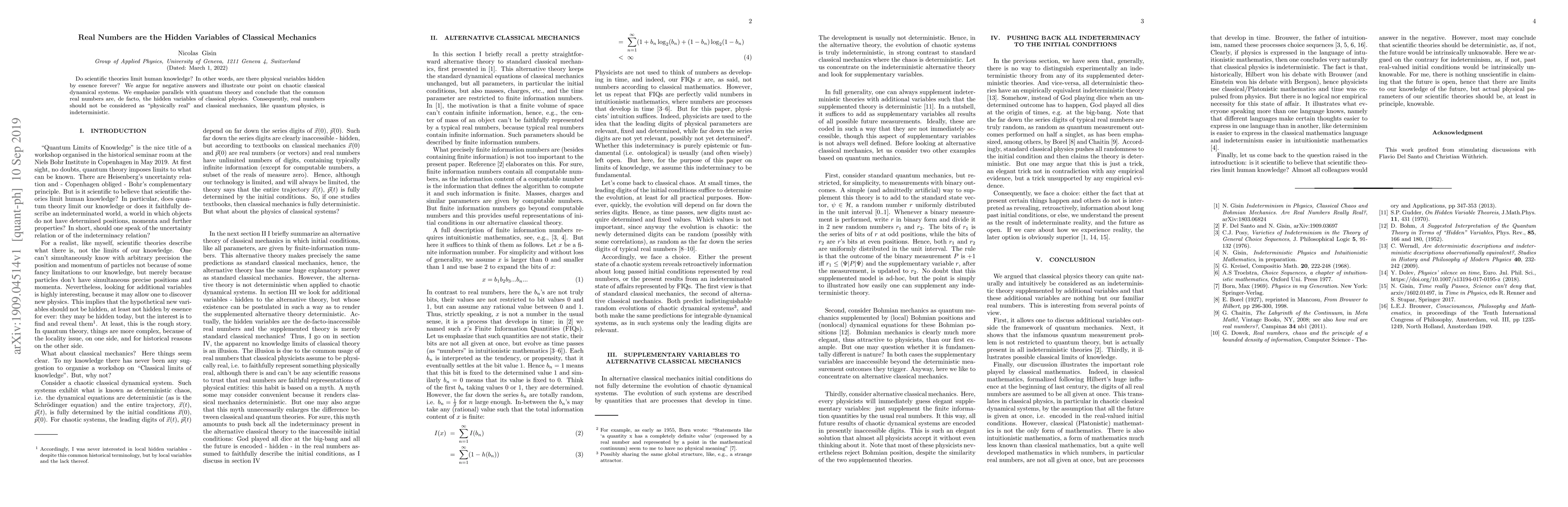This paper argues that real numbers act as hidden variables in classical mechanics, suggesting that classical physics is inherently indeterministic, similar to quantum theory, and that real numbers should not be viewed as "physically real." The authors use chaotic classical dynamical systems to illustrate their point.
