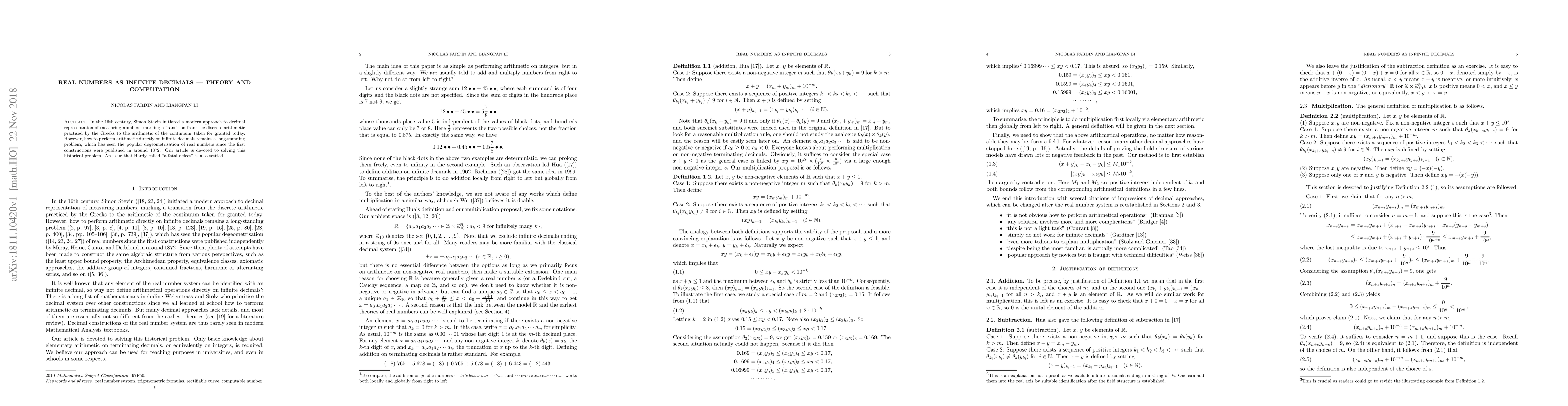 Researchers solve a 16th-century problem in decimal arithmetic, enabling direct computation on infinite decimals, resolving a historical issue called 'a fatal defect' by Hardy.