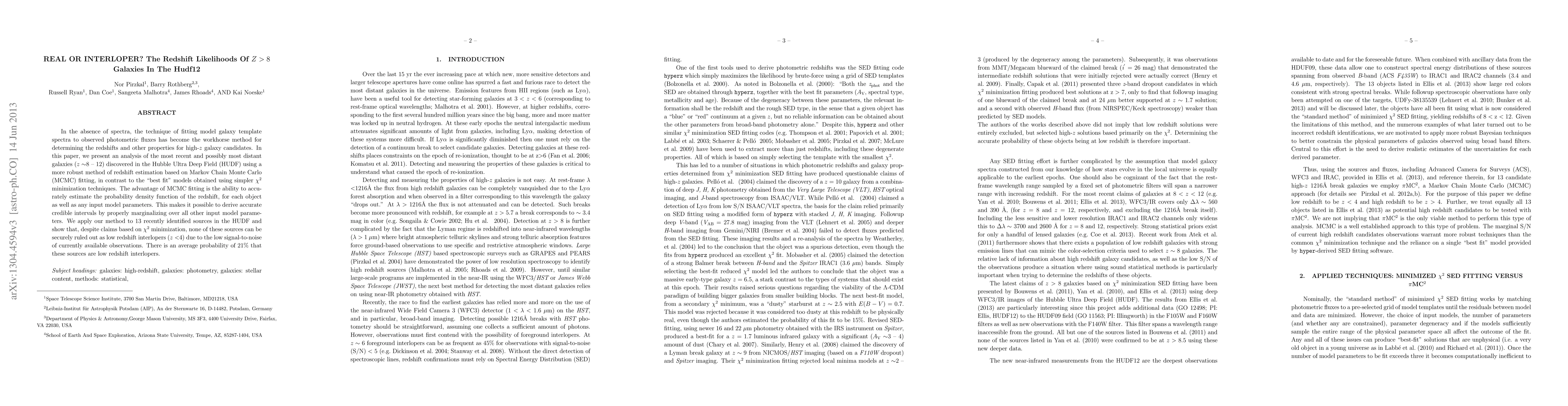 In the absence of spectra, fitting template model spectra to observed photometric fluxes, known as Spectral Energy Distribution (SED) fitting, has become the workhorse for identifying high-z galaxies. In this paper, we present an analysis of the most recent and possibly most distant galaxies discovered in the Hubble Ultra Deep Field using a more robust method of redshift estimation based on Markov Chain Monte Carlo fitting (MCMC), rather than relying on the redshift of "best fit" models obtained using common chi^2 minimization techniques. The advantage of MCMC fitting is the ability to accurately estimate the probability density function of the redshift, as well as any other input model parameters, allowing us to derive accurate credible intervals by properly marginalizing over all other input model parameters. We apply our method to 13 recently identified sources and show that, despite claims based on chi^2 minimization, none of these sources can be securely ruled out as low redshift interlopers given the low signal-to-noise of currently available observations. We estimate that there is an average probability of 21% that these sources are low redshift interlopers.