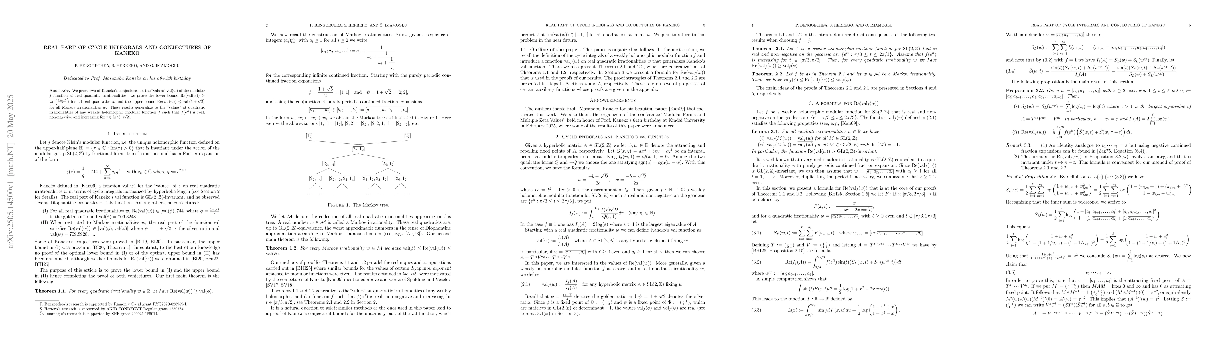 The paper employs techniques from complex analysis and modular forms to prove conjectures related to the real part of cycle integrals.
