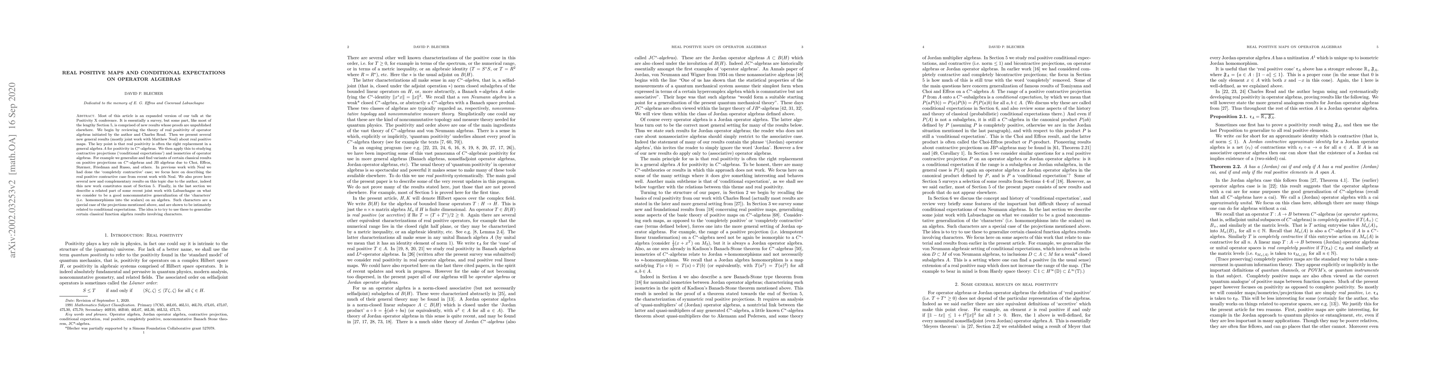 Most of this article is an expanded version of our conference talk. It is essentially a survey, but some part, like most of the lengthy Section 5, is comprised of new results whose proofs are unpublished elsewhere. We begin by reviewing the theory of real positivity of operator algebras initiated by the author and Charles Read. Then we present several new general results (mostly joint work with Matthew Neal) about real positive maps. The key point is that real positivity is often the right replacement in a general algebra $A$ for positivity in C*-algebras. We then apply this to studying contractive projections (`conditional expectations') and isometries of operator algebras. For example we generalize and find variants of certain classical results on positive projections on C*-algebras and JB algebras due to Choi, Effros, St{\o}rmer, Friedman and Russo, and others. In previous work with Neal we had done the `completely contractive' case; we focus here on describing the real positive contractive case from recent work with Neal. We also prove here several new and complementary results on this topic due to the author, indeed this new work constitutes most of Section 5. Finally, in the last section we describe a related part of some recent joint work with Labuschagne on what we consider to be a good noncommutative generalization of the `characters' (i.e. homomorphisms into the scalars) on an algebra. Such characters are a special case of the projections mentioned above, and are shown to be intimately related to conditional expectations. The idea is to try to use these to generalize certain classical function algebra results involving characters.
