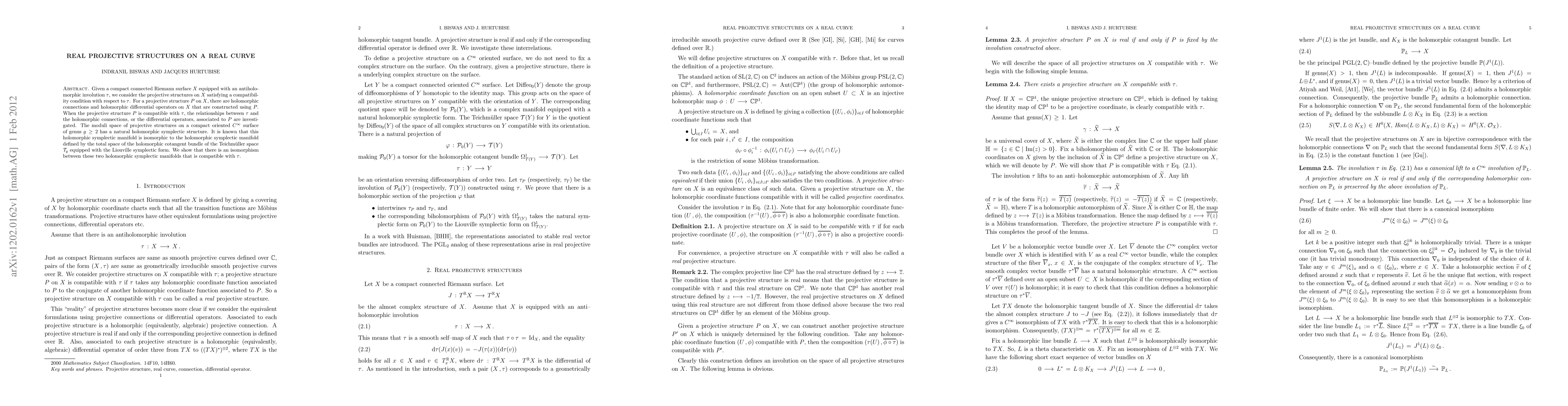 Researchers show an isomorphism between two holomorphic symplectic manifolds that preserve a given antiholomorphic involution, providing insight into projective structures on compact connected Riemann surfaces.