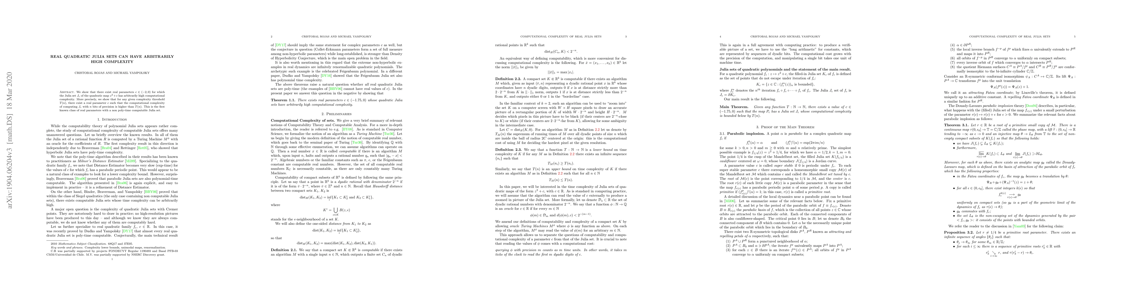 This paper demonstrates that real quadratic Julia sets can exhibit computational complexity that exceeds any given threshold, indicating that for certain real parameters $c$, the set $J_c$ cannot be computed in polynomial time. This marks the first instance of real parameters yielding non-poly-time computable Julia sets.