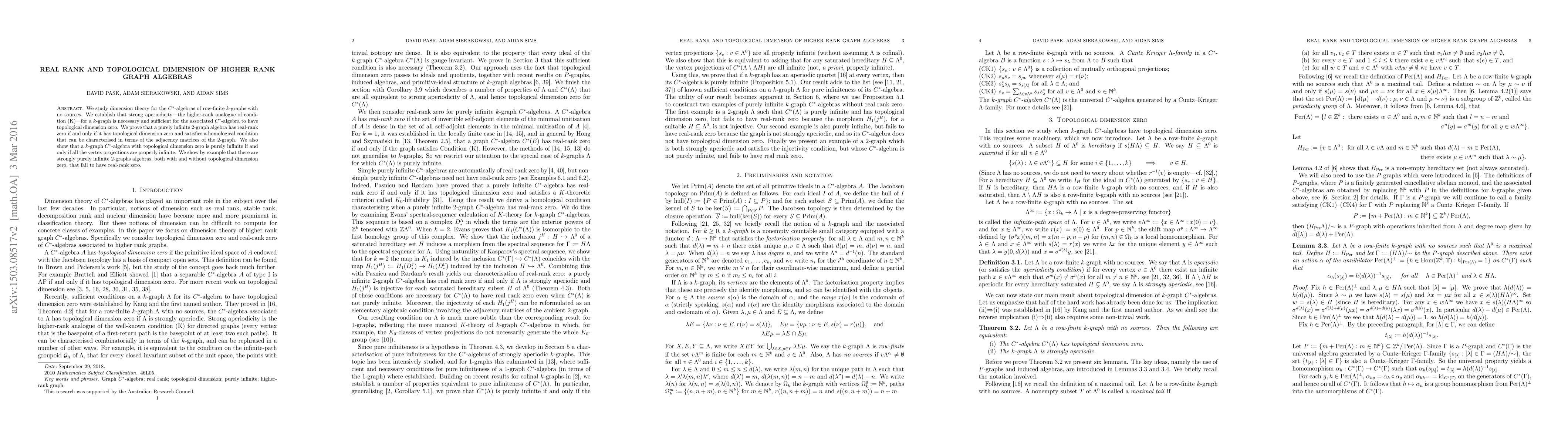 This paper explores dimension theory for $C^*$-algebras of row-finite $k$-graphs, proving that strong aperiodicity is necessary and sufficient for a $C^*$-algebra to have topological dimension zero. It also establishes a connection between real-rank zero, topological dimension zero, and homological conditions for purely infinite $2$-graph algebras.