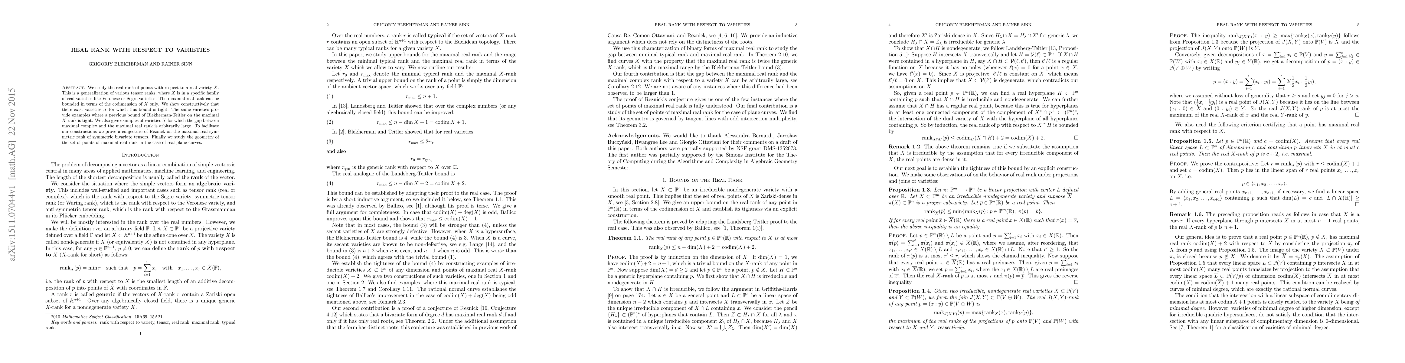 This paper generalizes tensor rank concepts to real ranks concerning specific real varieties like Veronese or Segre varieties, showing that the maximal real rank is tightly bounded by the codimension of the variety. It also constructs varieties where previous maximal rank bounds are tight and explores the geometric set of points of maximal real rank for real plane curves.