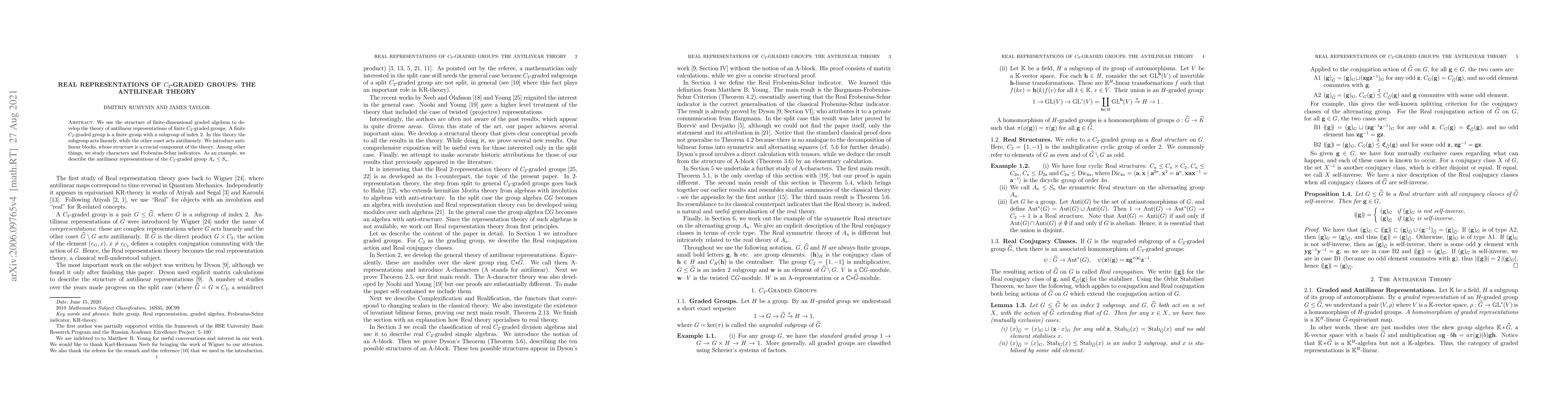 The paper presents a novel approach to understanding antilinear representations of $C_2$-graded groups, introducing antilinear blocks and examining characters and Frobenius-Schur indicators in this context.