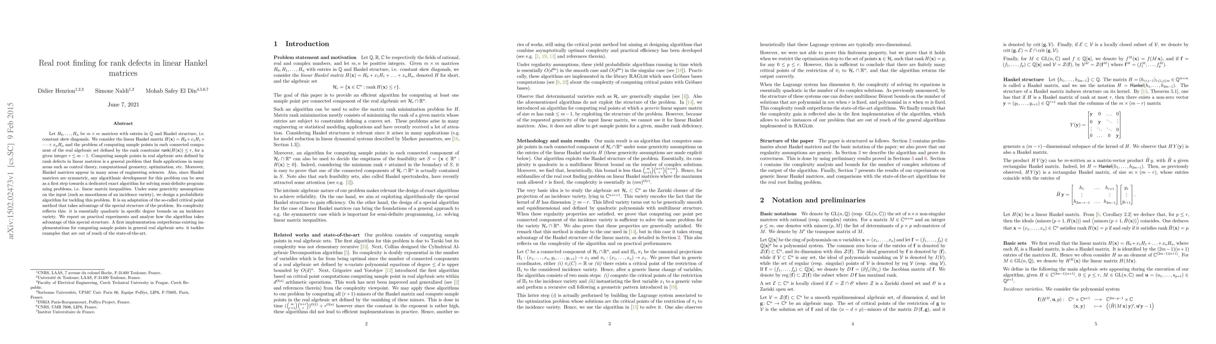 Let $H\_0, ..., H\_n$ be $m \times m$ matrices with entries in $\QQ$ and Hankel structure, i.e. constant skew diagonals. We consider the linear Hankel matrix $H(\vecx)=H\_0+\X\_1H\_1+...+\X\_nH\_n$ and the problem of computing sample points in each connected component of the real algebraic set defined by the rank constraint ${\sf rank}(H(\vecx))\leq r$, for a given integer $r \leq m-1$. Computing sample points in real algebraic sets defined by rank defects in linear matrices is a general problem that finds applications in many areas such as control theory, computational geometry, optimization, etc. Moreover, Hankel matrices appear in many areas of engineering sciences. Also, since Hankel matrices are symmetric, any algorithmic development for this problem can be seen as a first step towards a dedicated exact algorithm for solving semi-definite programming problems, i.e. linear matrix inequalities. Under some genericity assumptions on the input (such as smoothness of an incidence variety), we design a probabilistic algorithm for tackling this problem. It is an adaptation of the so-called critical point method that takes advantage of the special structure of the problem. Its complexity reflects this: it is essentially quadratic in specific degree bounds on an incidence variety. We report on practical experiments and analyze how the algorithm takes advantage of this special structure. A first implementation outperforms existing implementations for computing sample points in general real algebraic sets: it tackles examples that are out of reach of the state-of-the-art.