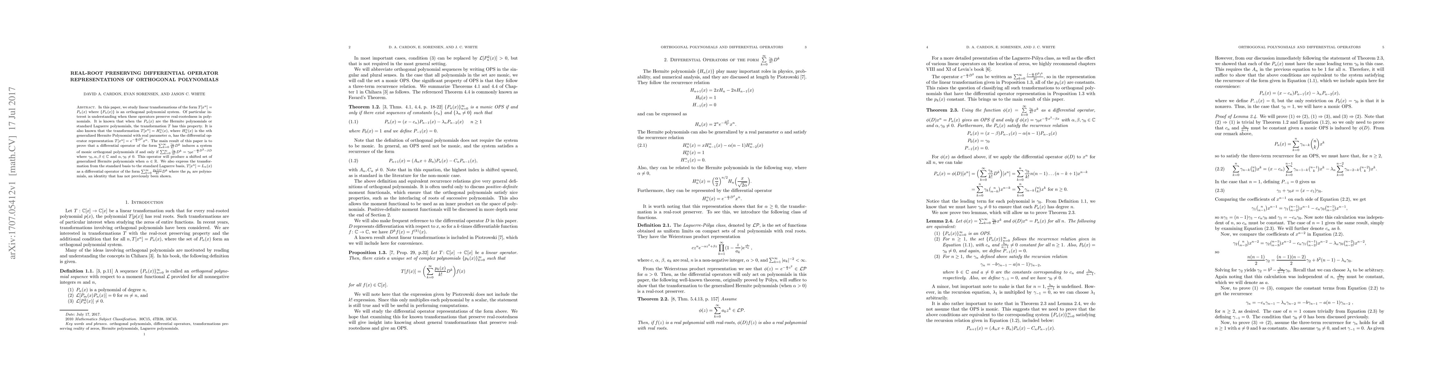 In this paper, we study linear transformations of the form $T[x^n]=P_n(x)$ where $\{P_n(x)\}$ is an orthogonal polynomial system. Of particular interest is understanding when these operators preserve real-rootedness in polynomials. It is known that when the $P_n(x)$ are the Hermite polynomials or standard Laguerre polynomials, the transformation $T$ has this property. It is also known that the transformation $T[x^n]=H_n^{\alpha}(x)$, where $H_n^{\alpha}(x)$ is the $n$th generalized Hermite Polynomial with real parameter $\alpha$, has the differential operator representation $T[x^n]=e^{-\frac{\alpha}{2}D^2}x^n$. The main result of this paper is to prove that a differential operator of the form $\sum_{k=0}^\infty \frac{\gamma_k}{k!} D^k$ induces a system of monic orthogonal polynomials if and only if $\sum_{k=0}^\infty \frac{\gamma_k}{k!} D^k=\gamma_0e^{-\frac{ \alpha}{2}D^2-\beta D}$ where $\gamma_0,\alpha,\beta \in \mathbb{C}$ and $\alpha,\gamma_0 \neq 0$. This operator will produce a shifted set of generalized Hermite polynomials when $\alpha \in \mathbb{R}$. We also express the transformation from the standard basis to the standard Laguerre basis, $T[x^n]=L_n(x)$ as a differential operator of the form $\sum_{k=0}^\infty \frac{p_k(x)}{k!} D^k$ where the $p_k$ are polynomials, an identity that has not previously been shown.