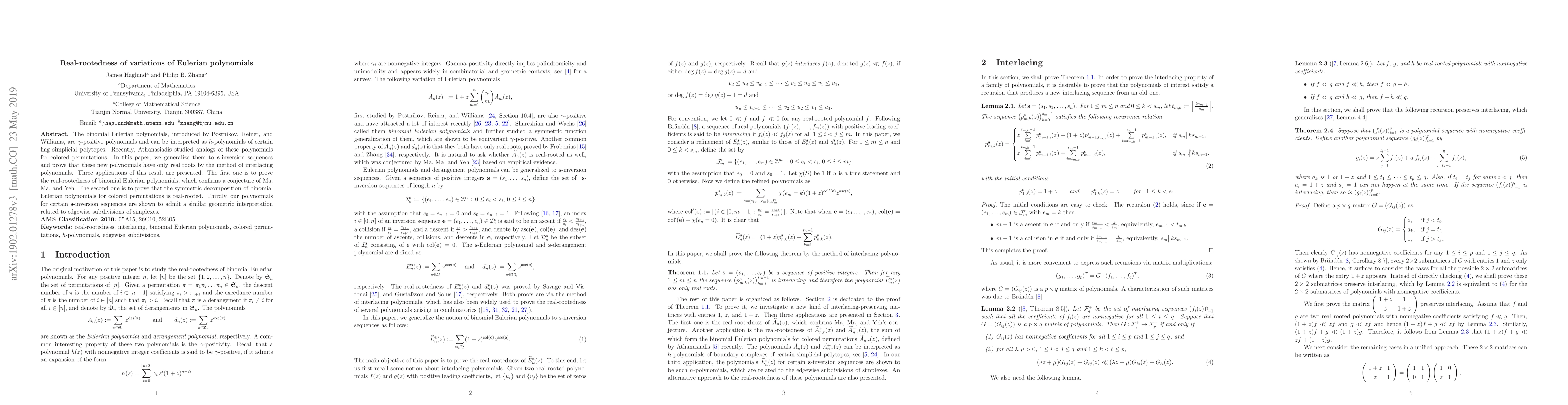 The binomial Eulerian polynomials, introduced by Postnikov, Reiner, and Williams, are $\gamma$-positive polynomials and can be interpreted as $h$-polynomials of certain flag simplicial polytopes. Recently, Athanasiadis studied analogs of these polynomials for colored permutations. In this paper, we generalize them to $\mathbf{s}$-inversion sequences and prove that these new polynomials have only real roots by the method of interlacing polynomials. Three applications of this result are presented. The first one is to prove the real-rootedness of binomial Eulerian polynomials, which confirms a conjecture of Ma, Ma, and Yeh. The second one is to prove that the symmetric decomposition of binomial Eulerian polynomials for colored permutations is real-rooted. Thirdly, our polynomials for certain $\mathbf{s}$-inversion sequences are shown to admit a similar geometric interpretation related to edgewise subdivisions of simplexes.