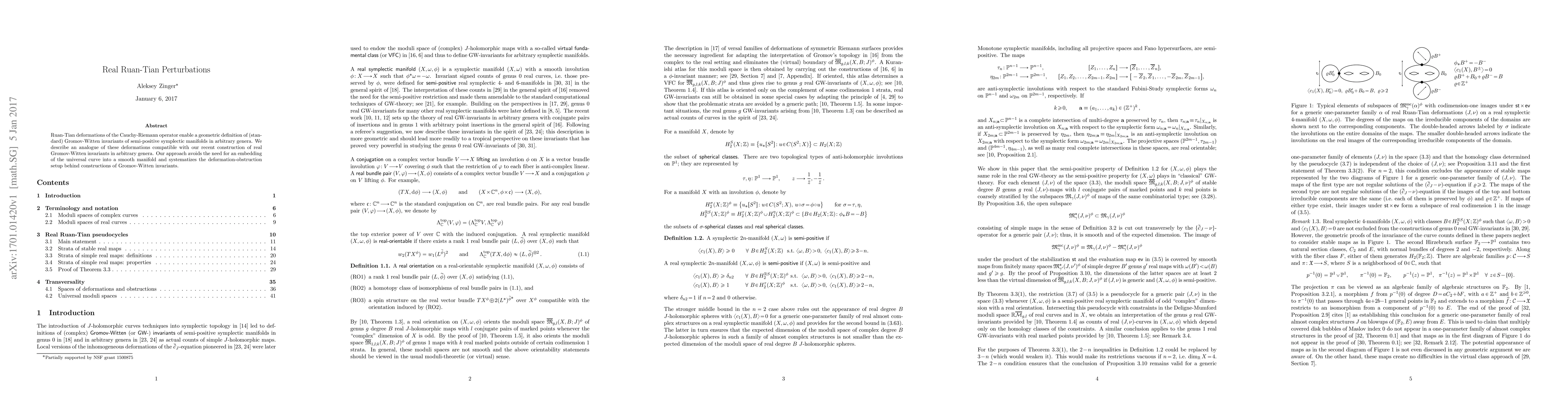 Ruan-Tian deformations of the Cauchy-Riemann operator enable a geometric definition of (standard) Gromov-Witten invariants of semi-positive symplectic manifolds in arbitrary genera. We describe an analogue of these deformations compatible with our recent construction of real Gromov-Witten invariants in arbitrary genera. Our approach avoids the need for an embedding of the universal curve into a smooth manifold and systematizes the deformation-obstruction setup behind constructions of Gromov-Witten invariants.