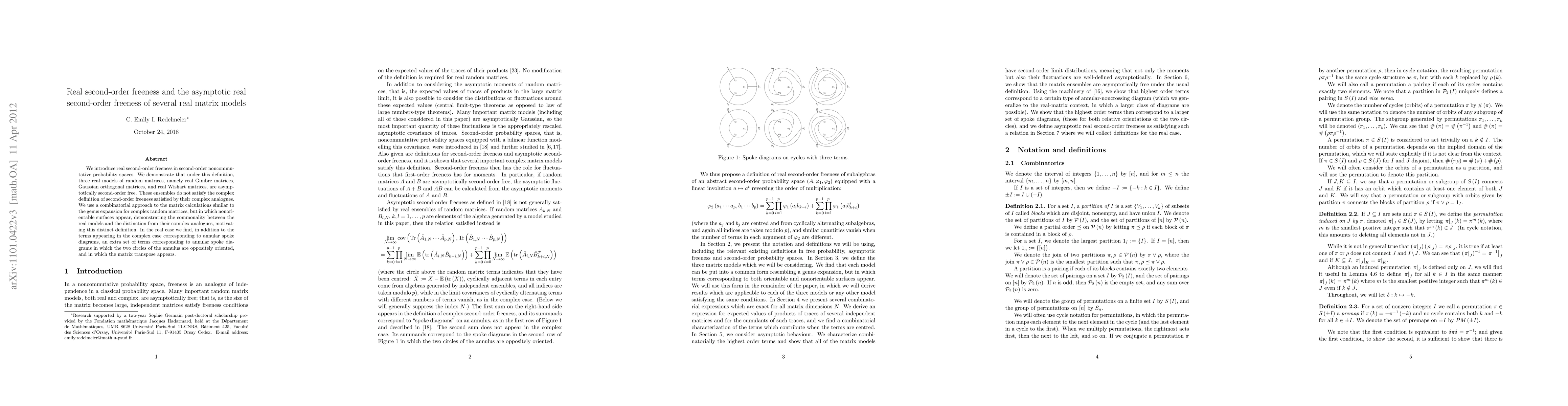 We introduce real second-order freeness in second-order noncommutative probability spaces. We demonstrate that under this definition, three real models of random matrices, namely real Ginibre matrices, Gaussian orthogonal matrices, and real Wishart matrices, are asymptotically second-order free. These ensembles do not satisfy the complex definition of second-order freeness satisfied by their complex analogues. We use a combinatorial approach to the matrix calculations similar to the genus expansion for complex random matrices, but in which nonorientable surfaces appear, demonstrating the commonality between the real models and the distinction from their complex analogues, motivating this distinct definition. In the real case we find, in addition to the terms appearing in the complex case corresponding to annular spoke diagrams, an extra set of terms corresponding to annular spoke diagrams in which the two circles of the annulus are oppositely oriented, and in which the matrix transpose appears.