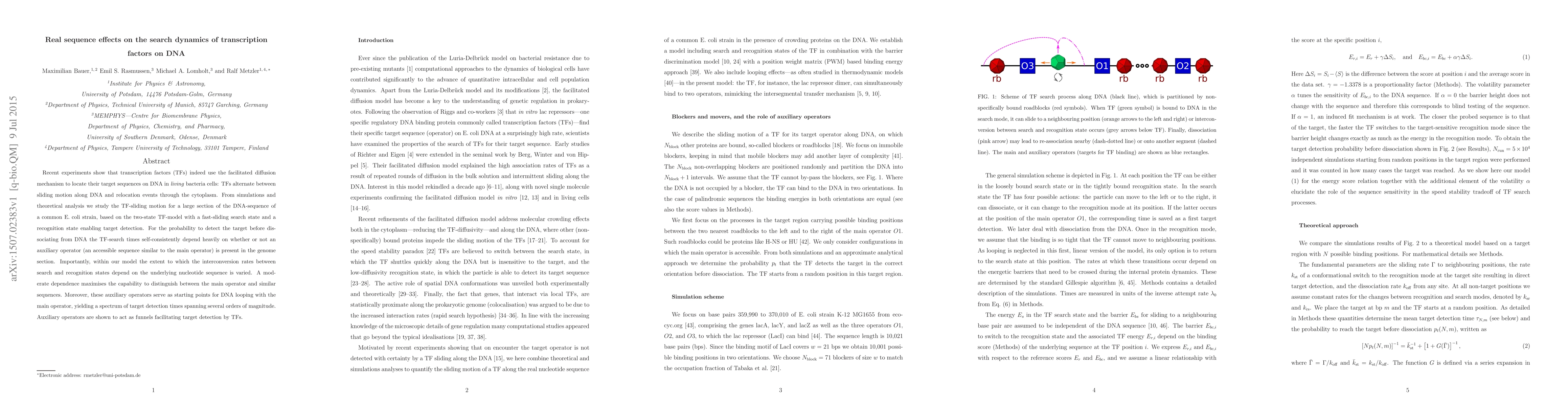 Recent experiments show that transcription factors (TFs) indeed use the facilitated diffusion mechanism to locate their target sequences on DNA in living bacteria cells: TFs alternate between sliding motion along DNA and relocation events through the cytoplasm. From simulations and theoretical analysis we study the TF-sliding motion for a large section of the DNA-sequence of a common E. coli strain, based on the two-state TF-model with a fast-sliding search state and a recognition state enabling target detection. For the probability to detect the target before dissociating from DNA the TF-search times self-consistently depend heavily on whether or not an auxiliary operator (an accessible sequence similar to the main operator) is present in the genome section. Importantly, within our model the extent to which the interconversion rates between search and recognition states depend on the underlying nucleotide sequence is varied. A moderate dependence maximises the capability to distinguish between the main operator and similar sequences. Moreover, these auxiliary operators serve as starting points for DNA looping with the main operator, yielding a spectrum of target detection times spanning several orders of magnitude. Auxiliary operators are shown to act as funnels facilitating target detection by TFs.