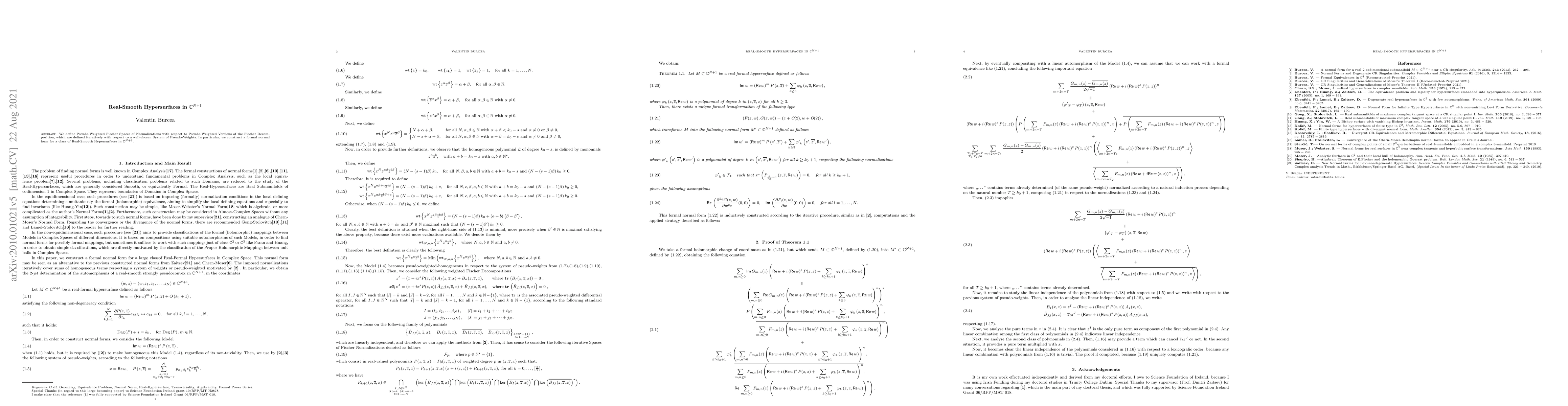 Researchers created a formal normal form for Real-Smooth Hypersurfaces in Complex Spaces using an iterative normalization procedure, advancing the understanding of these geometric objects.