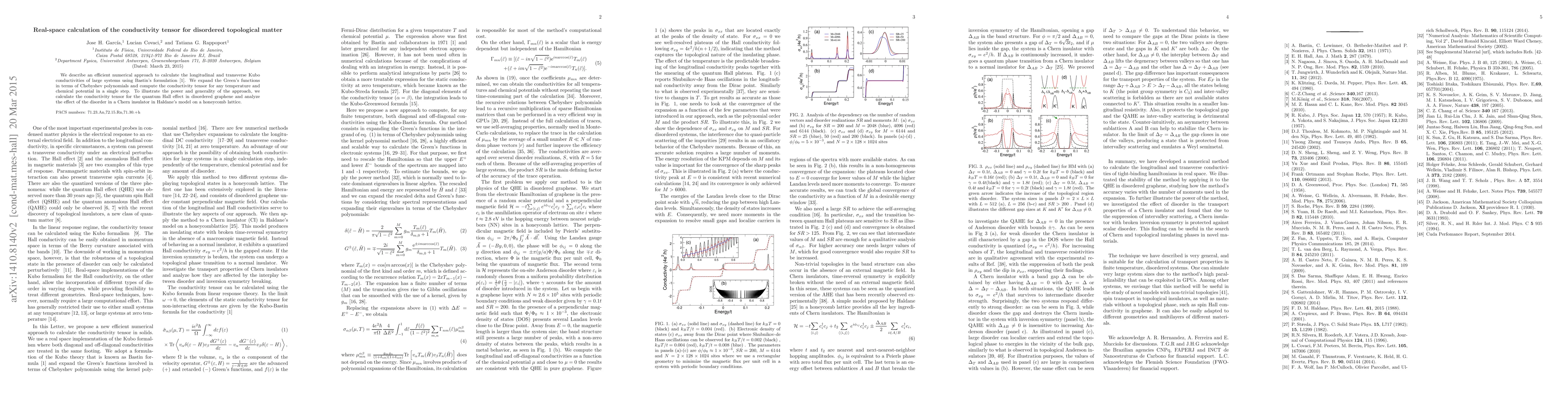 We describe an efficient numerical approach to calculate the longitudinal and transverse Kubo conductivities of large systems using Bastin's formulation. We expand the Green's functions in terms of Chebyshev polynomials and compute the conductivity tensor for any temperature and chemical potential in a single step. To illustrate the power and generality of the approach, we calculate the conductivity tensor for the quantum Hall effect in disordered graphene and analyze the effect of the disorder in a Chern insulator in Haldane's model on a honeycomb lattice.