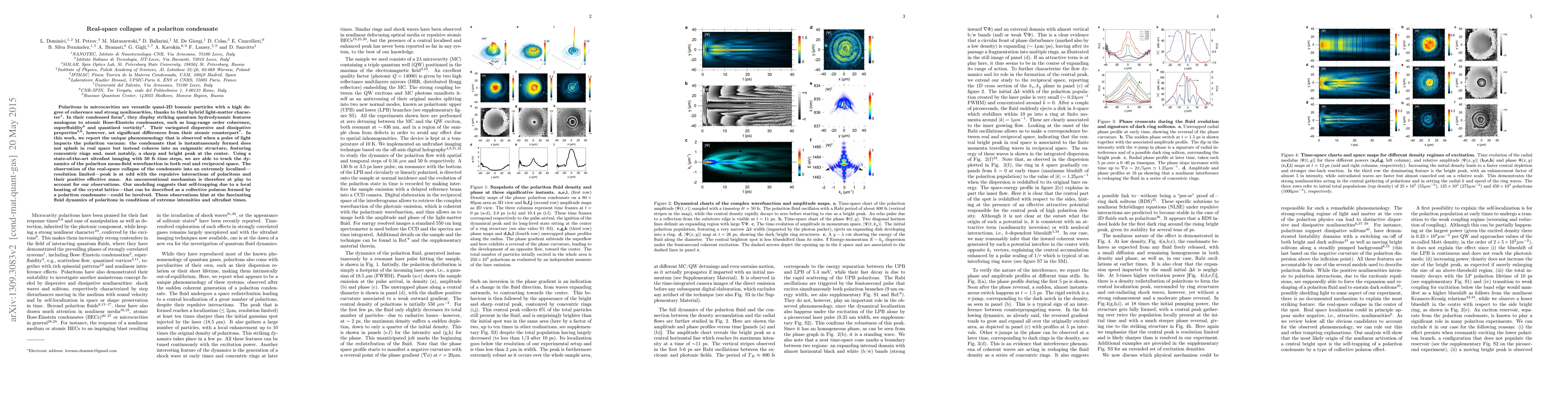 Polaritons in microcavities are versatile quasi-2D bosonic particles with a high degree of coherence and strong nonlinearities, thanks to their hybrid light-matter character. In their condensed form, they display striking quantum hydrodynamic features analogous to atomic Bose-Einstein condensates, such as long-range order coherence, superfluidity and quantized vorticity. Their variegated dispersive and dissipative properties, however, set significant differences from their atomic counterpart. In this work, we report the unique phenomenology that is observed when a pulse of light impacts the polariton vacuum: the condensate that is instantaneously formed does not splash in real space but instead coheres into an enigmatic structure, featuring concentric rings and, most notably, a sharp and bright peak at the center. Using a state-of-the-art ultrafast imaging with 50 fs time steps, we are able to track the dynamics of the polariton mean-field wavefunction in both real and reciprocal space. The observation of the real-space collapse of the condensate into an extremely localized---resolution limited---peak is at odd with the repulsive interactions of polaritons and their positive effective mass. An unconventional mechanism is therefore at play to account for our observations. Our modeling suggests that self-trapping due to a local heating of the crystal lattice---that can be described as a collective polaron formed by a polariton condensate---could be involved. These observations hint at the fascinating fluid dynamics of polaritons in conditions of extreme intensities and ultrafast times.