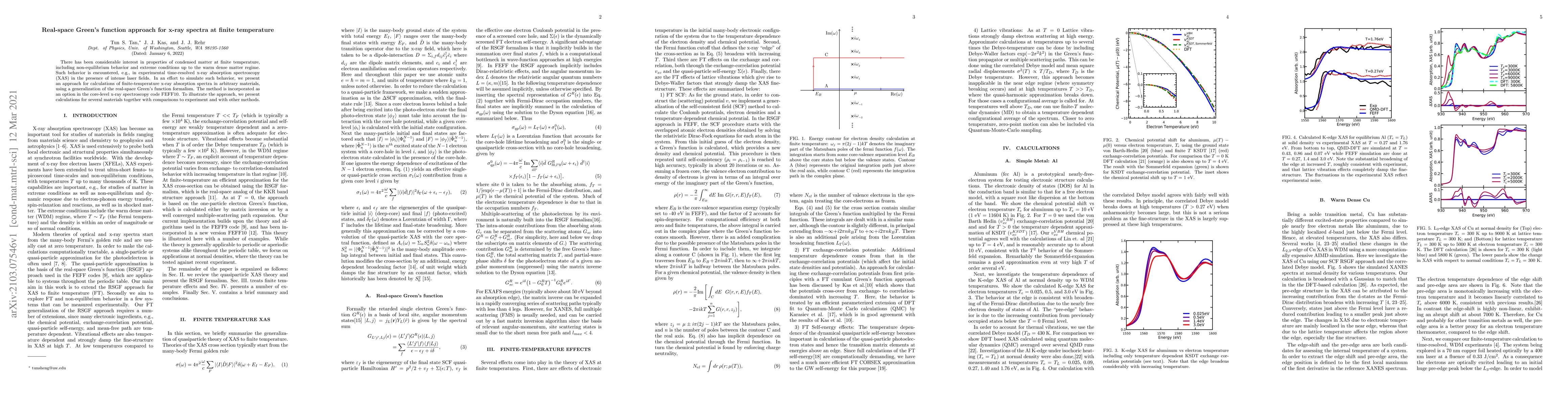 This paper introduces a real-space Green's function approach to calculate finite-temperature x-ray absorption spectra in various materials, implemented in the FEFF10 code. The method is demonstrated through calculations and comparisons with experimental data and other theoretical methods.