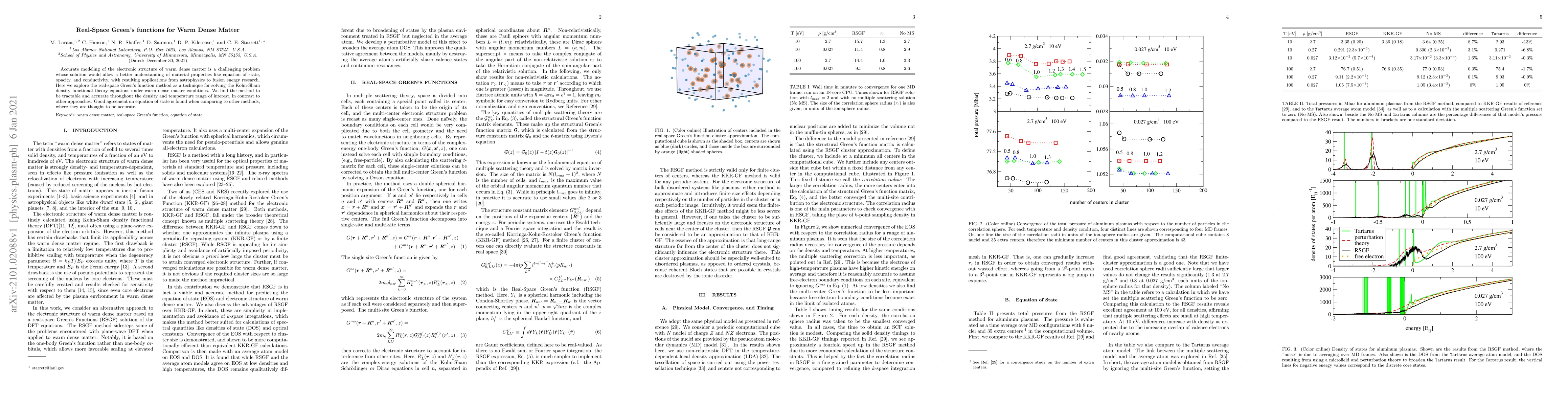 The research introduces real-space Green's functions as a method to model warm dense matter's electronic structure, demonstrating its tractability and accuracy across relevant density and temperature ranges. It compares favorably with other methods, showing good agreement on equation of state, with implications for understanding material properties in astrophysics and fusion energy research.