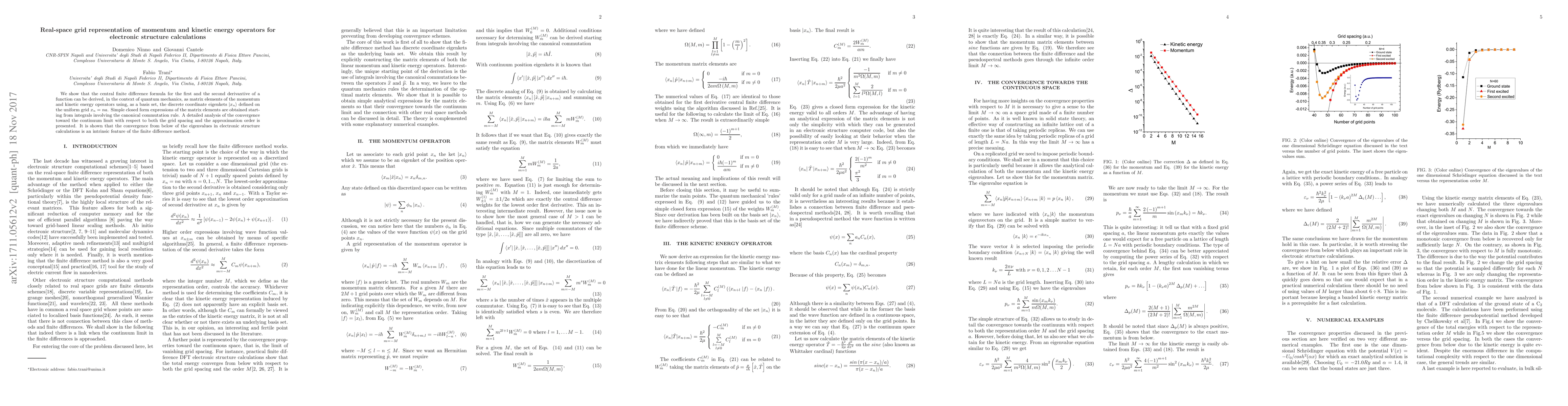 We show that the central finite difference formula for the first and the second derivative of a function can be derived, in the context of quantum mechanics, as matrix elements of the momentum and kinetic energy operators using, as a basis set, the discrete coordinate eigenkets $\vert x_n\rangle$ defined on the uniform grid $x_n=na$. Simple closed form expressions of the matrix elements are obtained starting from integrals involving the canonical commutation rule. A detailed analysis of the convergence toward the continuum limit with respect to both the grid spacing and the approximation order is presented. It is shown that the convergence from below of the eigenvalues in electronic structure calculations is an intrinsic feature of the finite difference method.