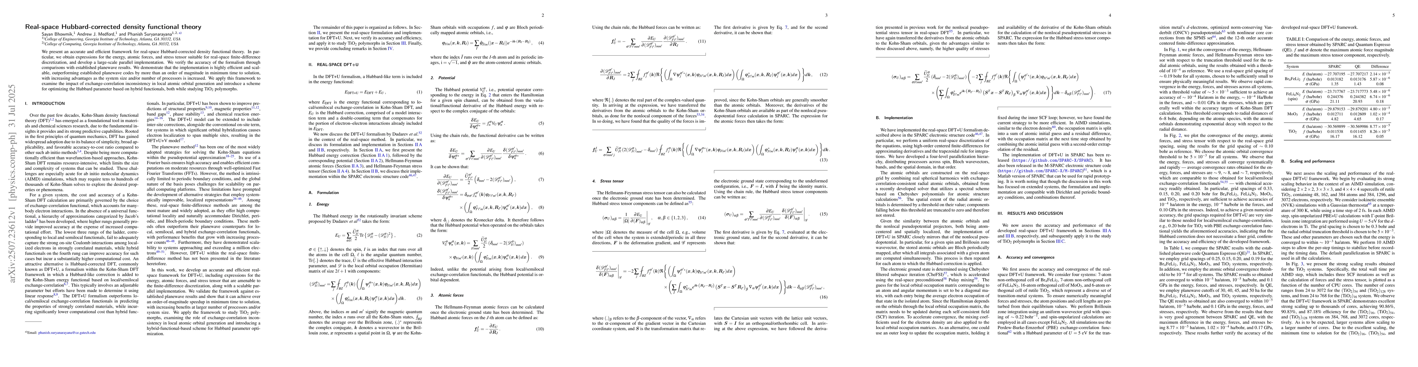 We present an accurate and efficient framework for real-space Hubbard-corrected density functional theory. In particular, we obtain expressions for the energy, atomic forces, and stress tensor suitable for real-space finite-difference discretization, and develop a large-scale parallel implementation. We verify the accuracy of the formalism through comparisons with established planewave results. We demonstrate that the implementation is highly efficient and scalable, outperforming established planewave codes by more than an order of magnitude in minimum time to solution, with increasing advantages as the system size and/or number of processors is increased. We apply this framework to examine the impact of exchange-correlation inconsistency in local atomic orbital generation and introduce a scheme for optimizing the Hubbard parameter based on hybrid functionals, both while studying TiO$_2$ polymorphs.