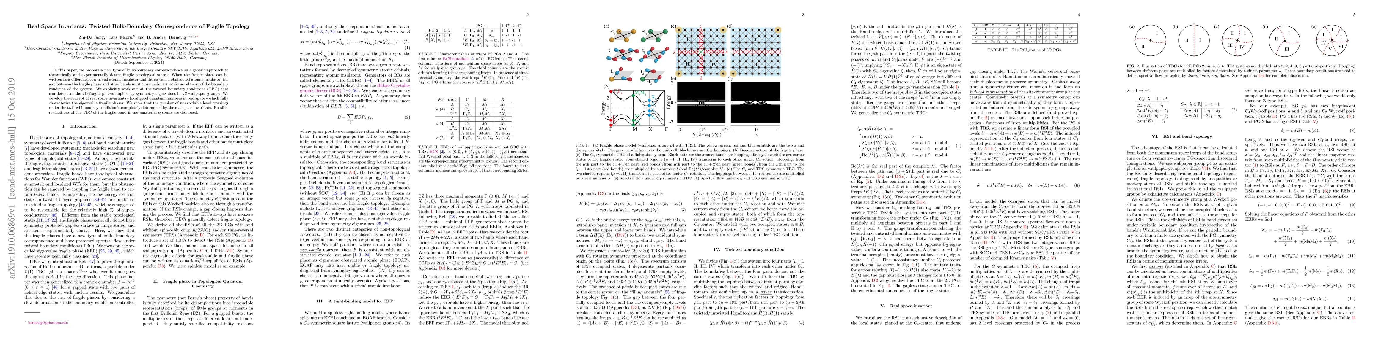 This paper introduces a new bulk-boundary correspondence to detect fragile topological states, showing that the gap closes under specific twisted boundary conditions. It develops real space invariants to characterize these phases and discusses their application in metamaterial systems.