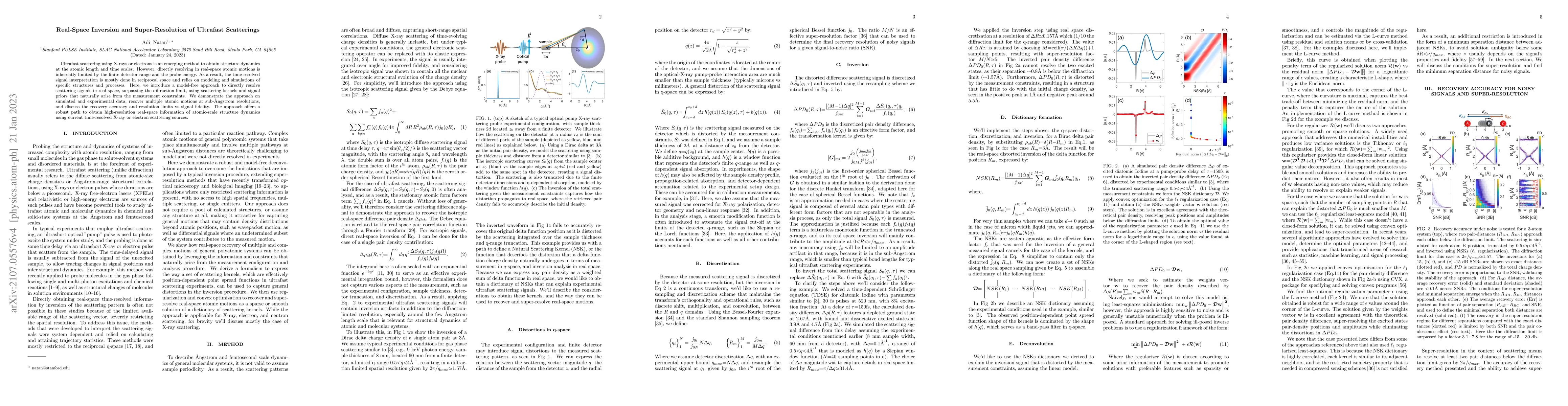 This paper presents a model-free method for real-space inversion of ultrafast scattering signals, surpassing the diffraction limit using scattering kernels and inherent measurement constraints. The approach enables sub-angstrom resolution recovery of atomic motions from both simulated and experimental data, offering a robust solution for high-resolution atomic-scale dynamics studies.