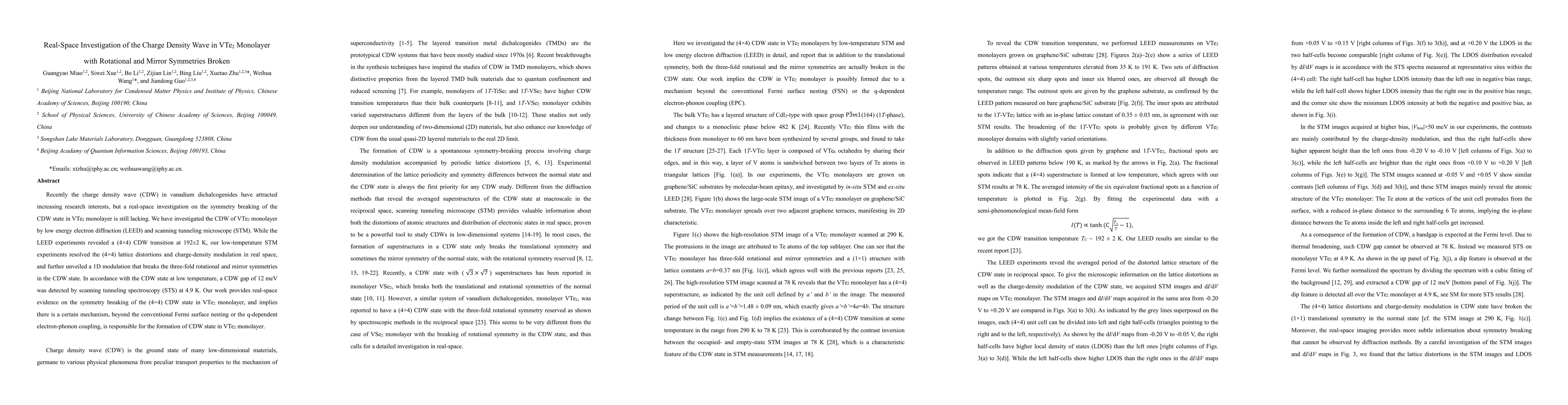 This paper investigates the charge density wave (CDW) in VTe2 monolayer using LEED and STM, revealing a (4X4) CDW transition and a 1D modulation breaking rotational and mirror symmetries. The study suggests a mechanism beyond conventional theories for the CDW formation.