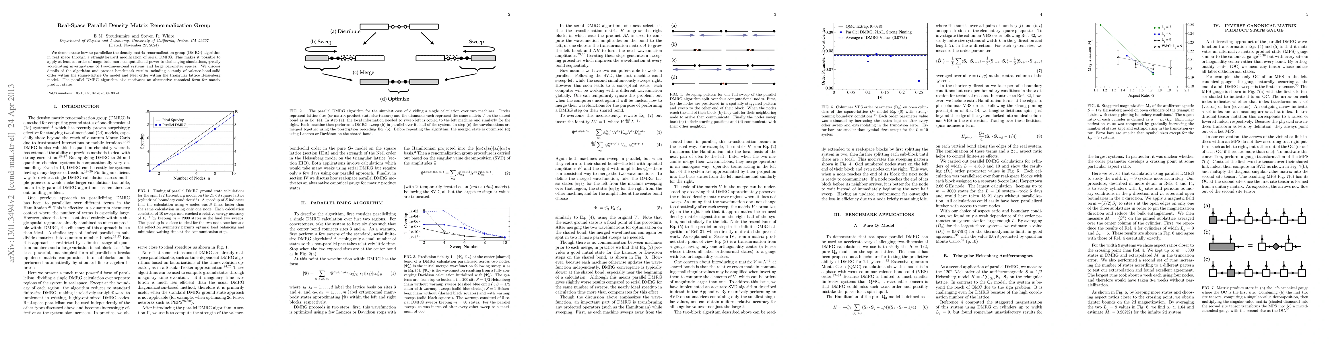 This paper presents a parallelized version of the density matrix renormalization group (DMRG) algorithm, enabling significant computational enhancements for simulations of two-dimensional systems and large parameter spaces. Benchmark results demonstrate its effectiveness in studying order parameters in specific models.