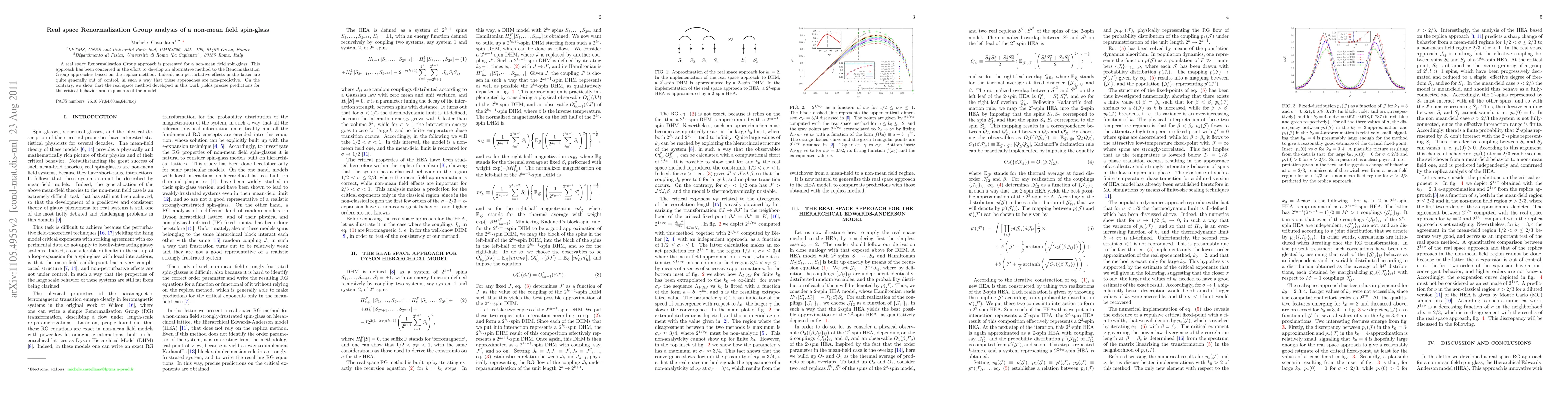 This paper introduces a real space Renormalization Group method for analyzing non-mean field spin-glasses, offering a more precise alternative to the predictively limited replica method approaches. The developed method provides accurate predictions for the critical behavior and exponents of the spin-glass model.