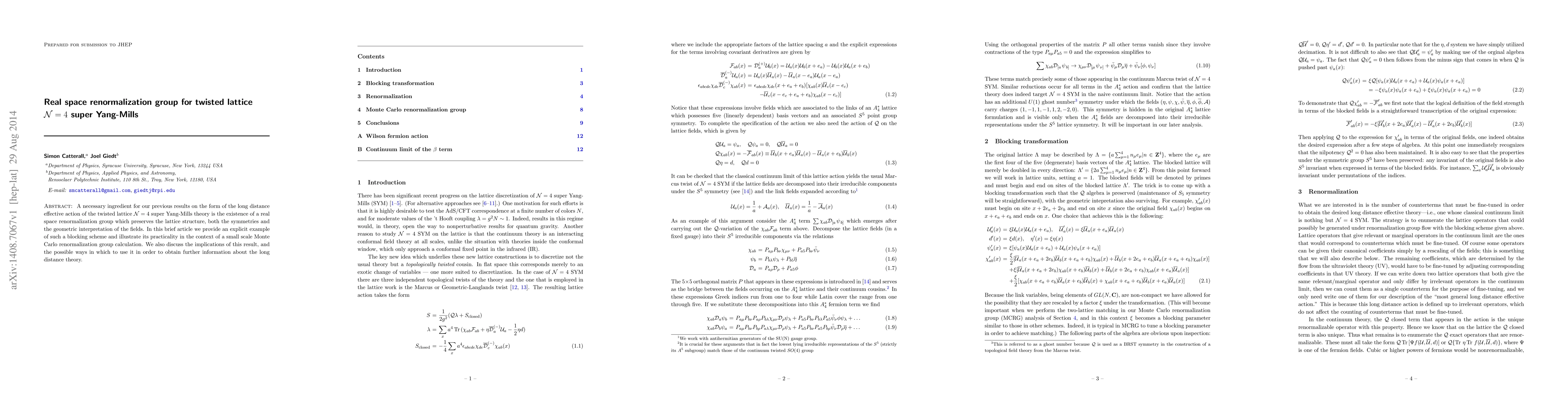 A necessary ingredient for our previous results on the form of the long distance effective action of the twisted lattice N=4 super Yang-Mills theory is the existence of a real space renormalization group which preserves the lattice structure, both the symmetries and the geometric interpretation of the fields. In this brief article we provide an explicit example of such a blocking scheme and illustrate its practicality in the context of a small scale Monte Carlo renormalization group calculation. We also discuss the implications of this result, and the possible ways in which to use it in order to obtain further information about the long distance theory.