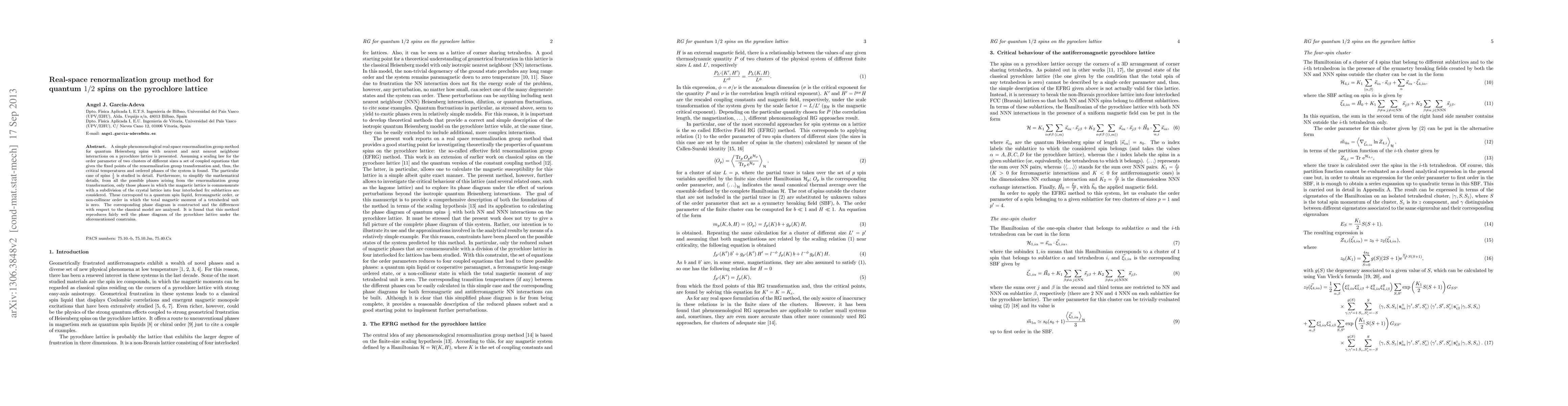 This paper presents a real-space renormalization group method for quantum $\frac{1}{2}$ spins on the pyrochlore lattice, focusing on phases where the magnetic lattice is commensurate with a four-sublattice structure. The method accurately reproduces the phase diagram, including quantum spin liquid, ferromagnetic, and non-collinear orders, compared to classical models.