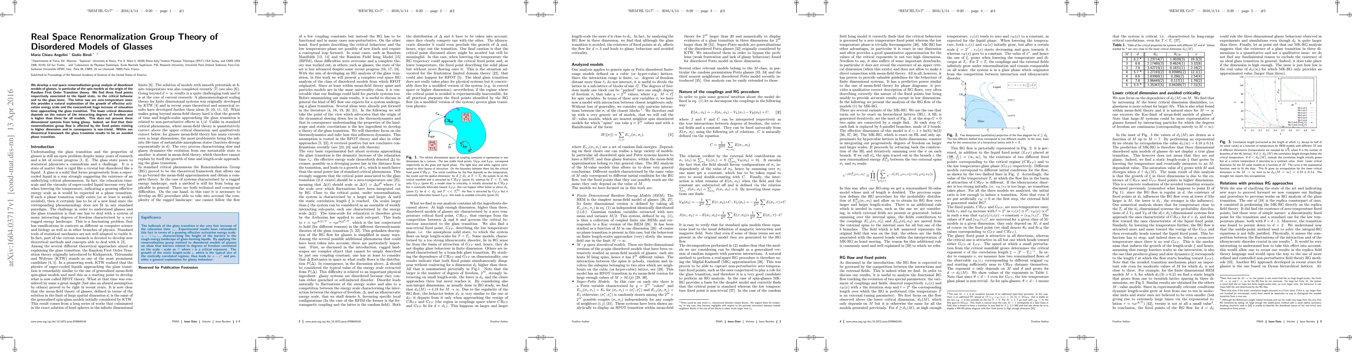 We develop a real space renormalisation group analysis of disordered models of glasses, in particular of the spin models at the origin of the Random First Order Transition theory. We find three fixed points respectively associated to the liquid state, to the critical behavior and to the glass state. The latter two are zero-temperature ones; this provides a natural explanation of the growth of effective activation energy scale and the concomitant huge increase of relaxation time approaching the glass transition. The lower critical dimension depends on the nature of the interacting degrees of freedom and is higher than three for all models. This does not prevent three dimensional systems from being glassy. Indeed, we find that their renormalisation group flow is affected by the fixed points existing in higher dimension and in consequence is non-trivial. Within our theoretical framework the glass transition results to be an avoided phase transition.
